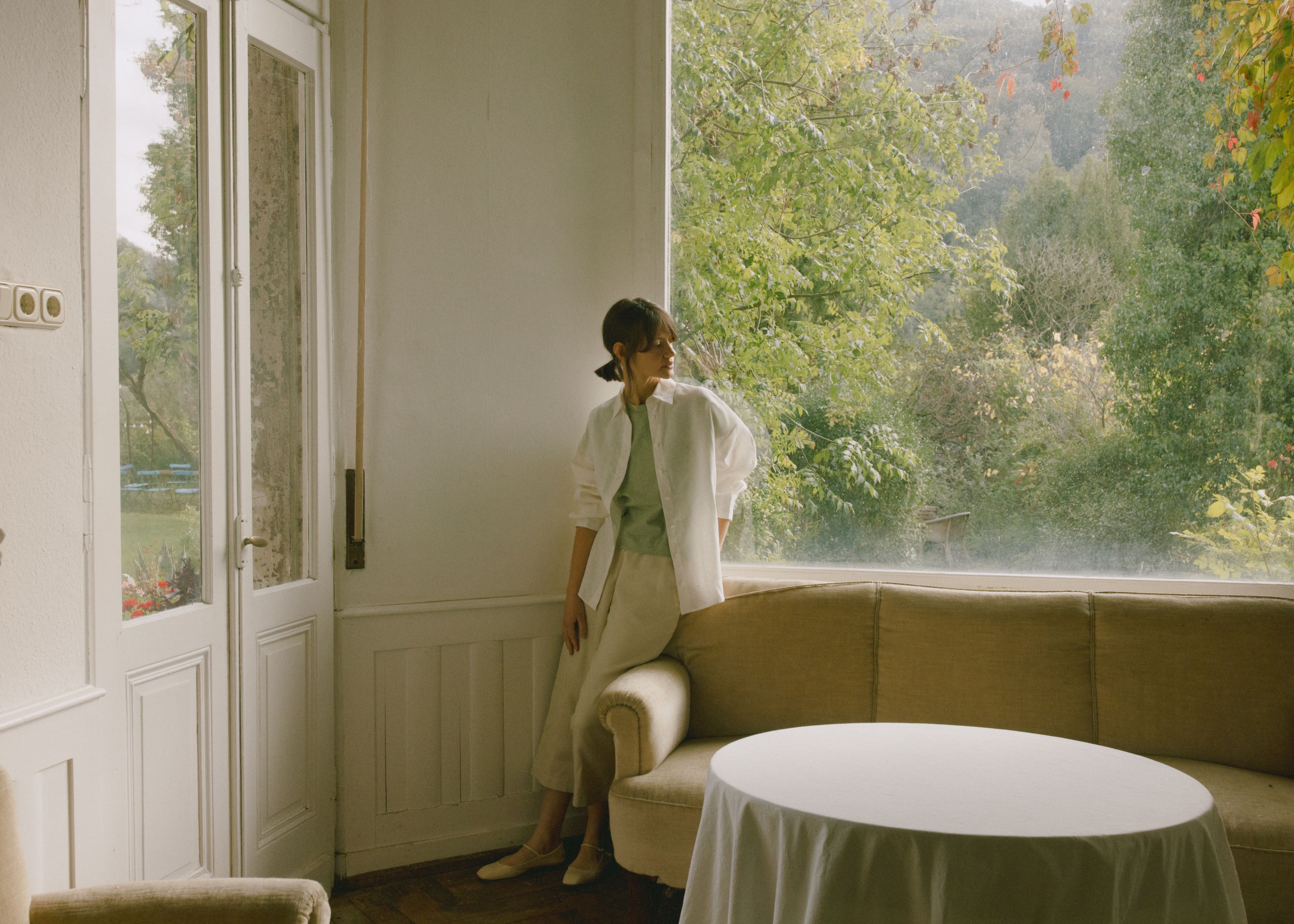 Carla Nicieza wearing WRAP SKIRT in Organic Cotton Voile