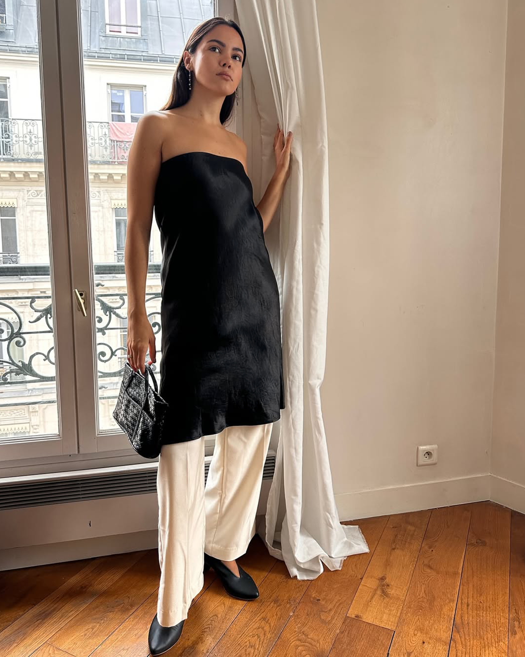Akerke wears size M for City Blazer and Suzette Shirt, and size S for Penny Blouse and Workshop Skirt.