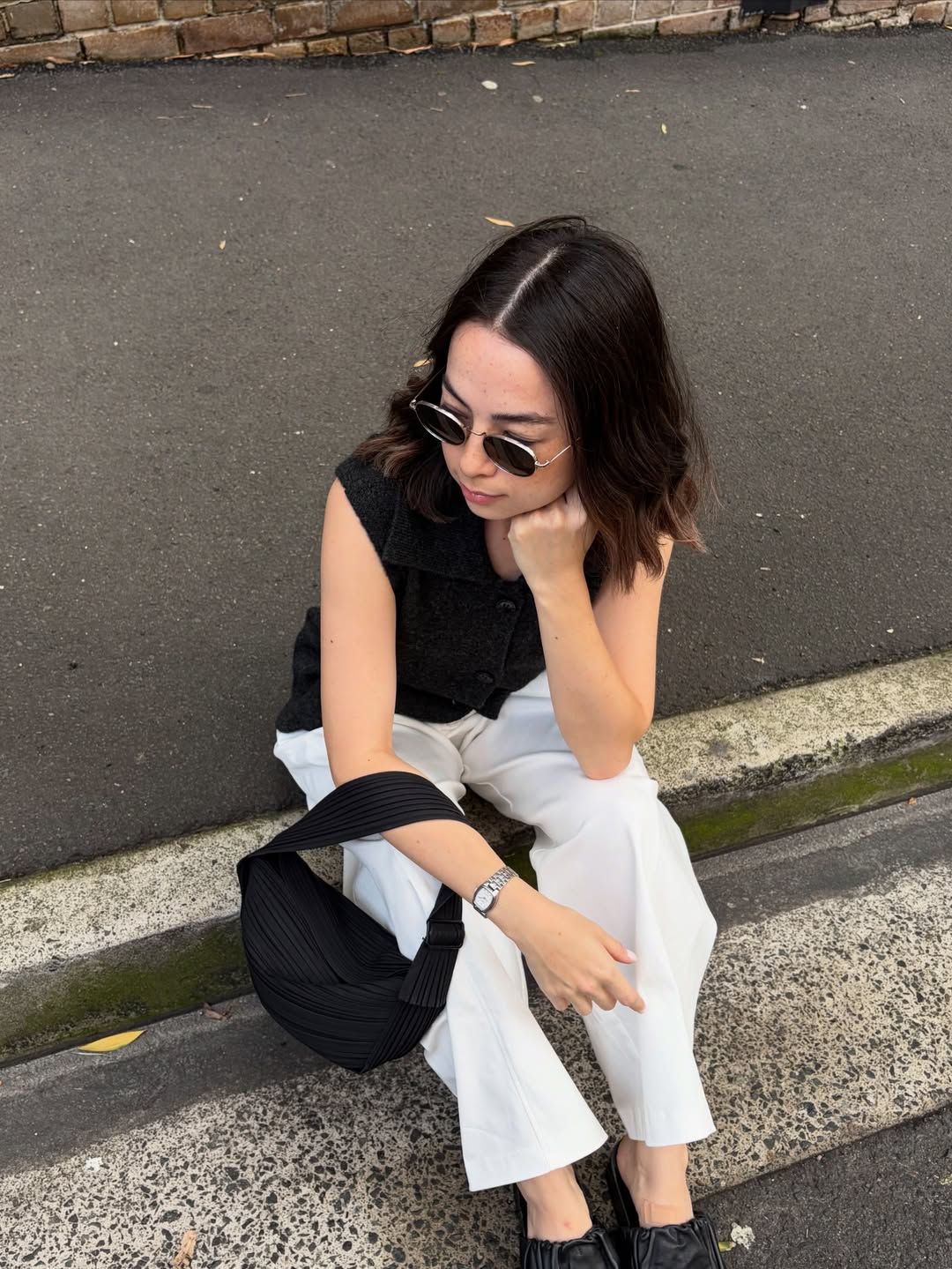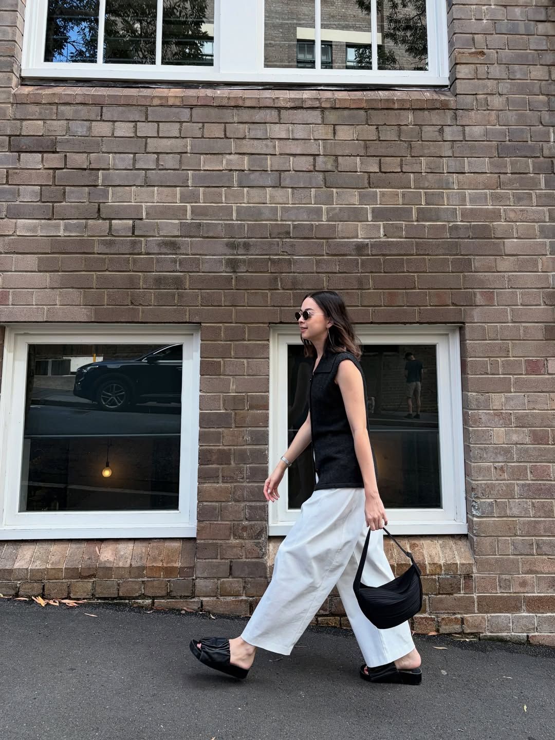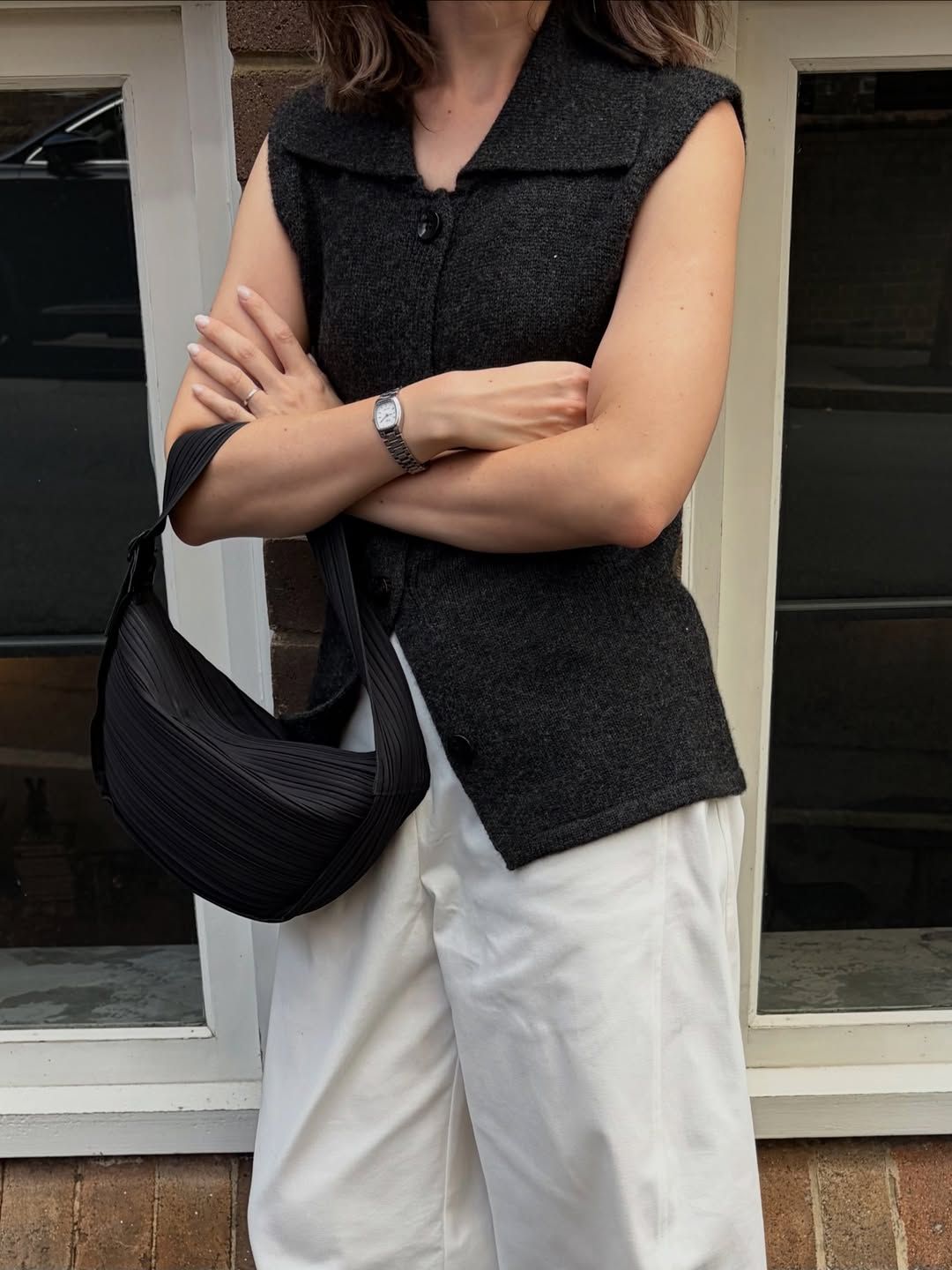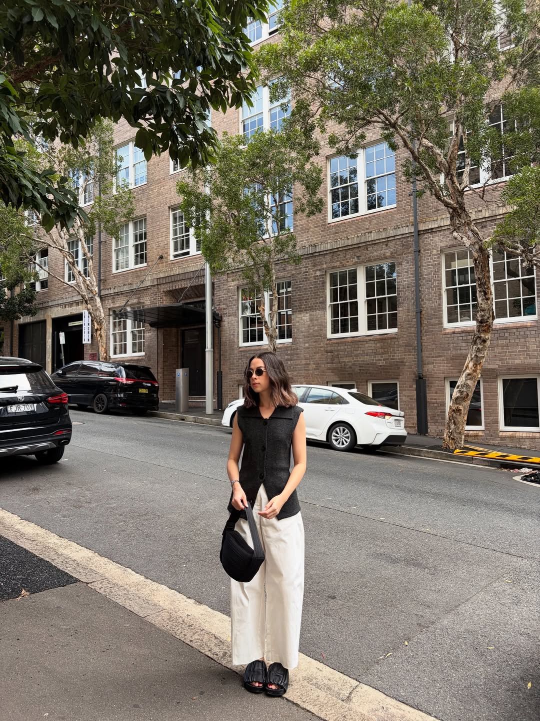 Ciara wears a size S for Poet Vest and size M for Paloma Trousers.