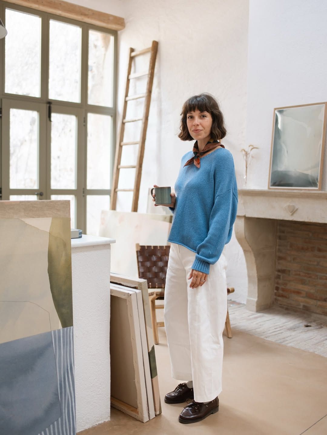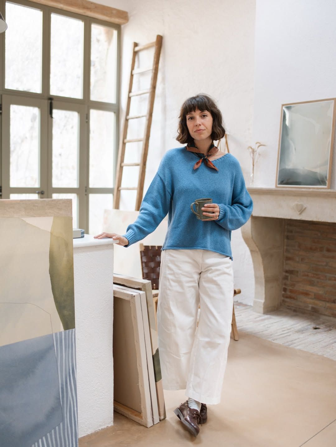 Meghan is wearing a size S for Cove Jumper and Paloma Trousers.