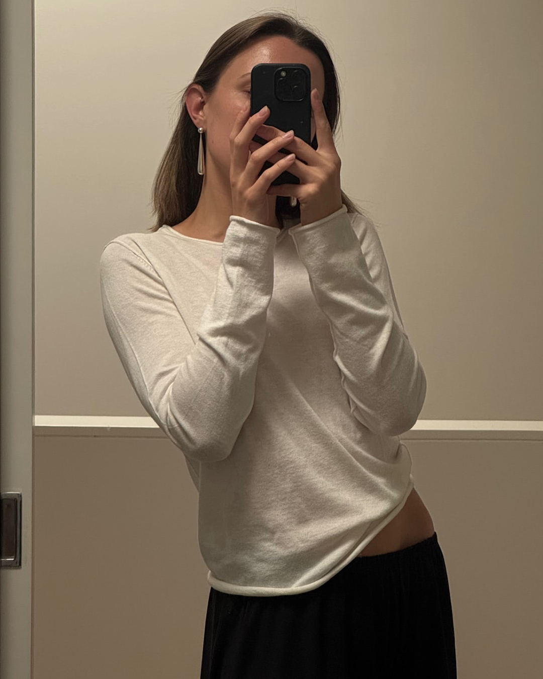 S-T-H Alpine Sleeved Tee in a Merino Wool, NAIA™ Acetate and Cotton blend. Designed for a regular fit with rolled hem details and raw stitch finishing at the seams. Wear it on its own or layered under Apres Ski Cardigan to keep warm and toasty.