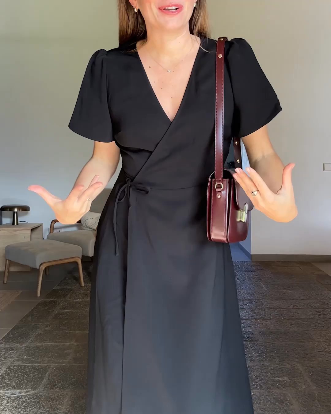 S-T-H Bell Dress in a smooth substantial Viscose Twill. Designed for a sophisticated fit with a functional wrap front, light gathers at the shoulders that extend to a flare sleeve, and two concealed side pockets. Wear with Paz by LoQ to make any evening feel special.