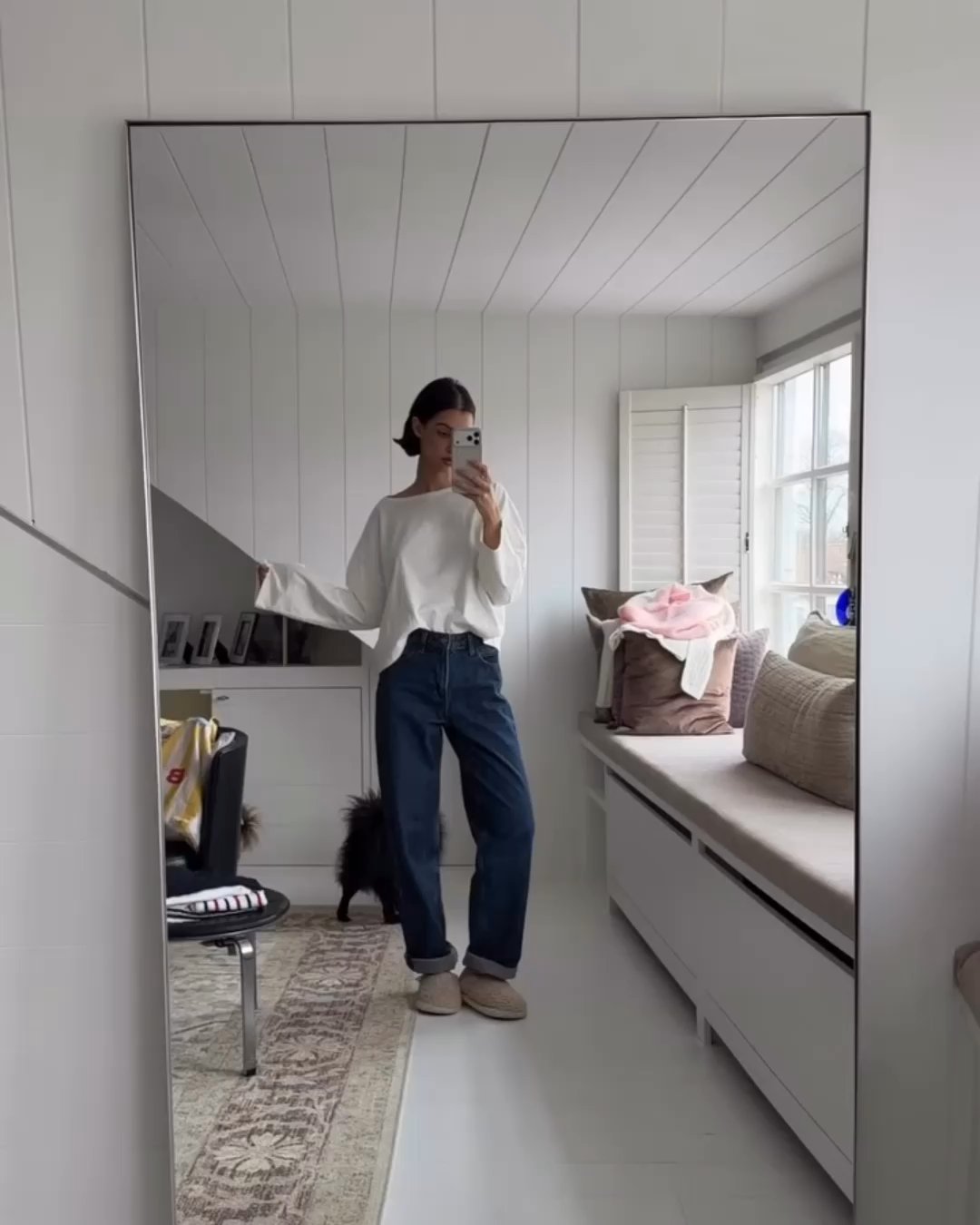 S-T-H Boathouse Tee in dry touch mid-weight Japanese Organic Cotton Jersey. Designed with a boat neckline and straight full length sleeves, shaped to a boxy fit and slightly cropped length. Wear with the sleeves cuffed up and pair with Ballet Skirt for an understated elegance.