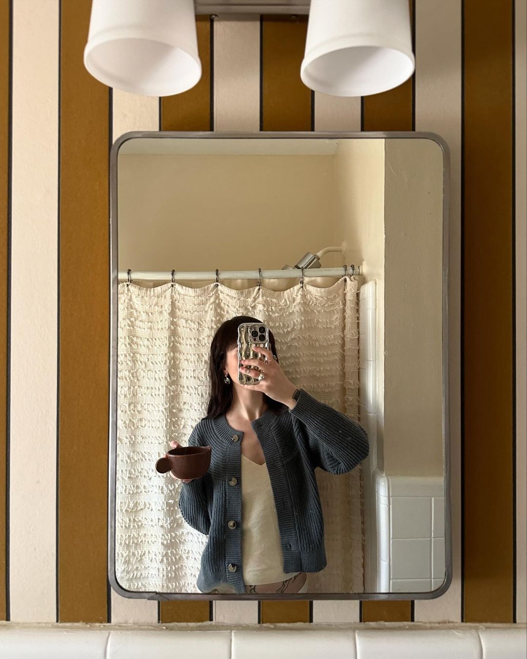 S-T-H Cabin Cardigan is a chunky knit cardigan made from Merino Wool and Organic Cotton. Designed with a curved weave pattern at the yoke and engraved horn buttons down the front, and features tapered sleeves and a slightly cropped fit. Wear on its own or layered for extra warmth and comfort during the Holidays.