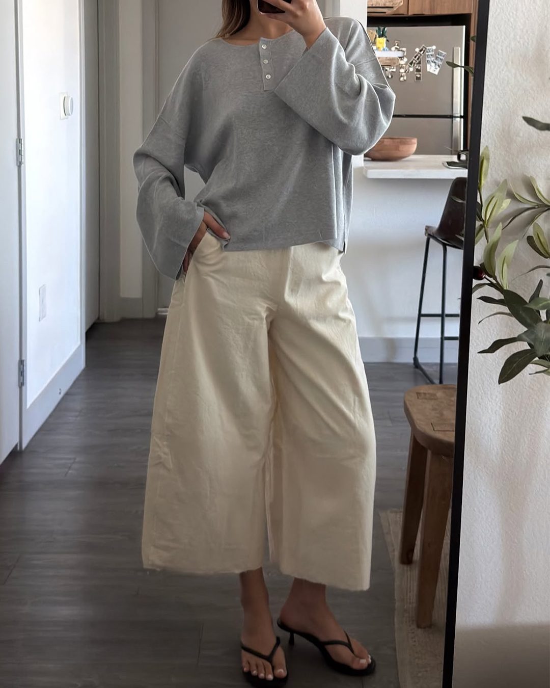 S-T-H College Henley Top in an Organic Cotton & Linen blend makes for a cosy everyday companion. Designed for a relaxed fit with a half placket, wide sleeves, and exposed seams. Wear on its own or layer over Park Tank for cooler months.