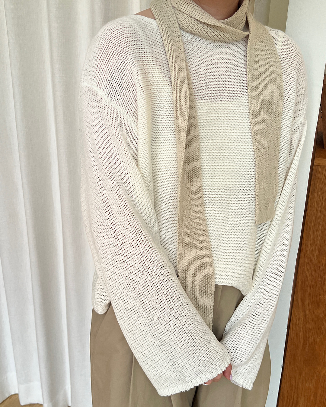 S-T-H Grove Knit Jumper in a loose weave Cotton knit that has a soft, tactile hand feel. Designed for a comfortable lounge fit with a boat neckline that allows for layering, and cut in a boxy silhouette with wide sleeves to transition comfortably into cooler seasons. Wear together with Grove Knit Scarf for an elevated tonal look.