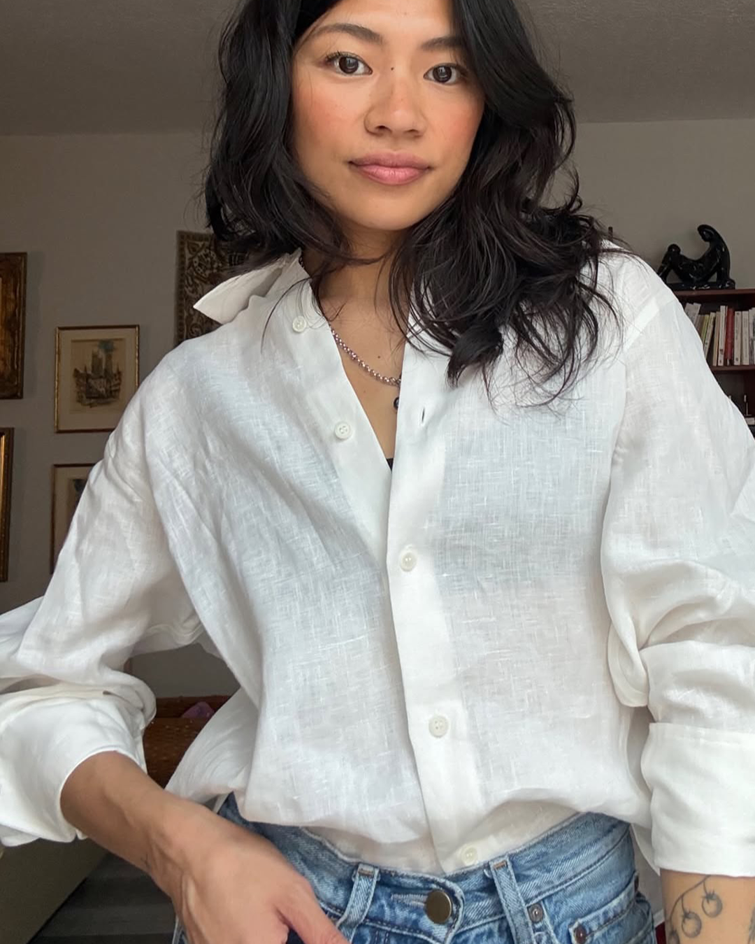 S-T-H Palais Shirt in pure Linen. Designed for a lounge fit with a distinct collar and curved hem. Made with corozo nut buttons down the front and two on the sleeve cuff. Pair with Palais Slacks for an elevated linen coordinated look.