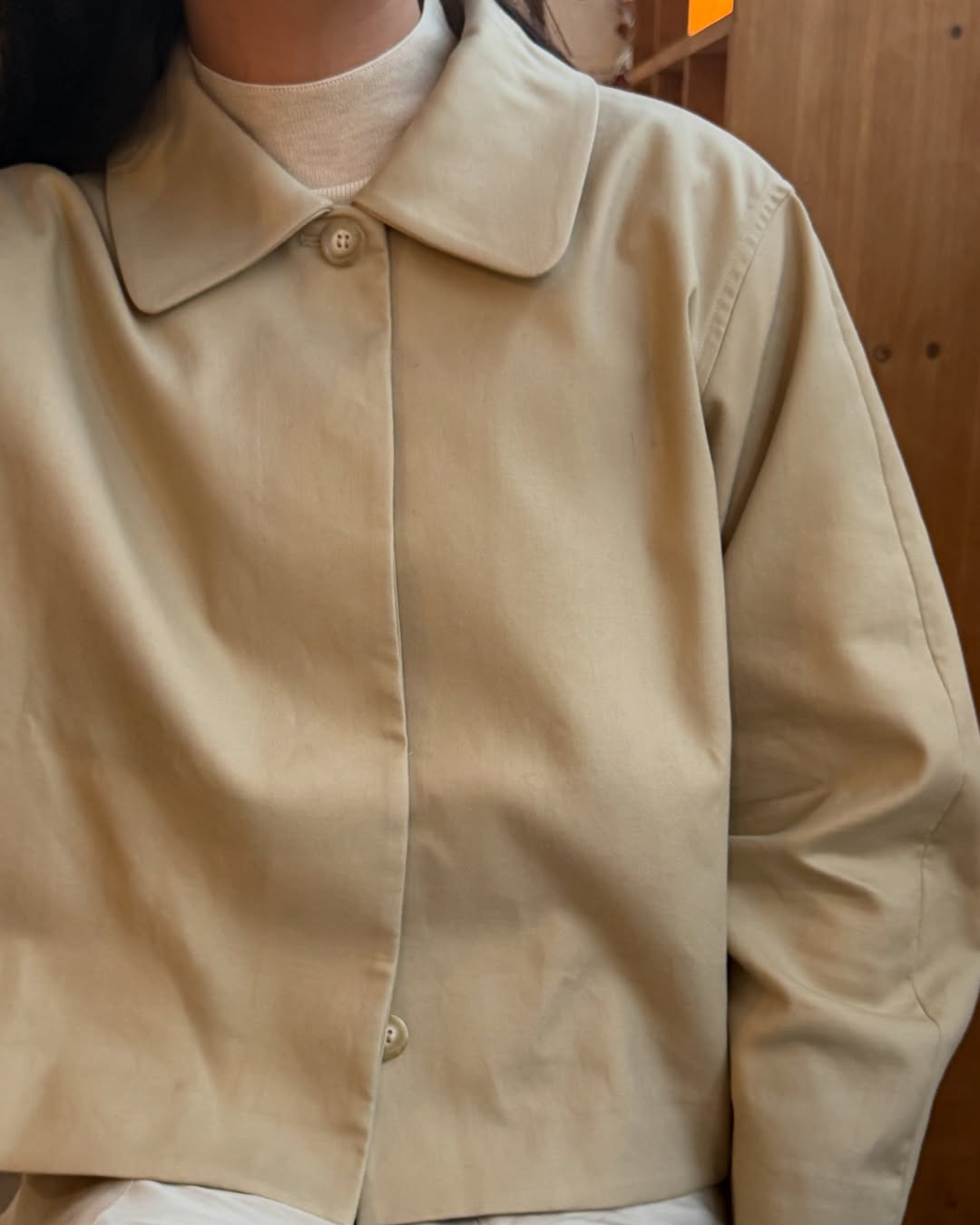 S-T-H Penn Jacket in soft smooth Organic Cotton. Designed to sit just above the hip for a smart cropped fit and curved sleeves for added structure. Complete with a rounded collar, blind stitching at the hem for a seamless finish, and a neatly concealed placket with genuine horn buttons.