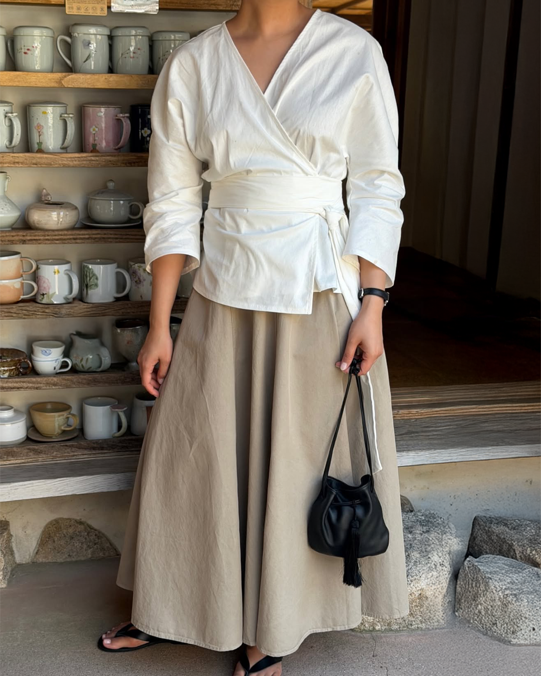 S-T-H Perry Skirt in smooth brushed Cotton Lyocell blend. Designed for a regular fit with panel detailing all around, and cut to a flared silhouette with a generous hem. Features a fabric covered button at the waist for a finishing touch, and a concealed side zip. Wear together with Perry Blouse for a modern vintage ensemble.