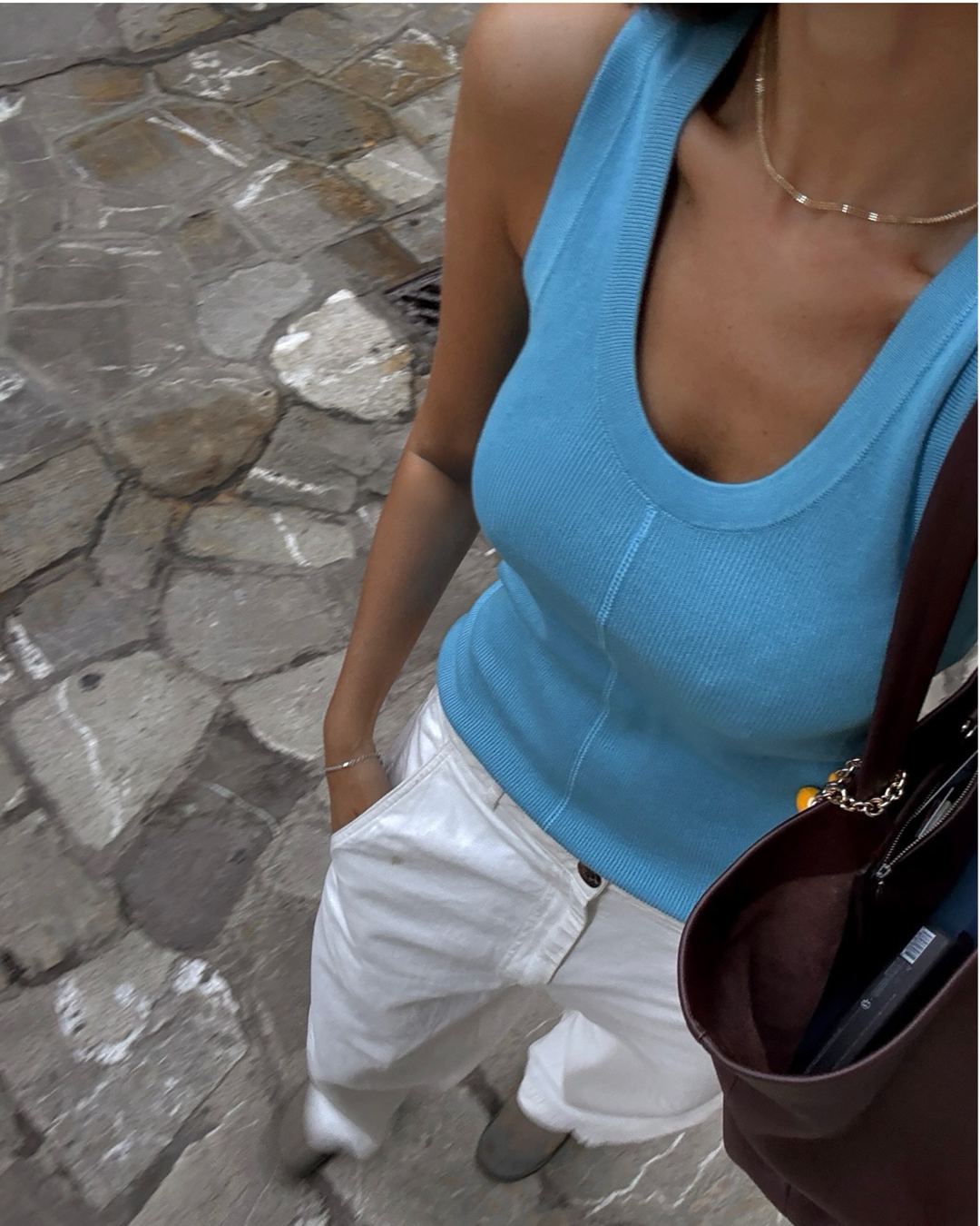 S-T-H Sailor Tank in ECOVERO™ Viscose and Silk knit. Designed with a scoop neckline and cut to a streamlined shape with an exposed middle seam detailing. Wear it alone or layered under a jumper in between seasons.