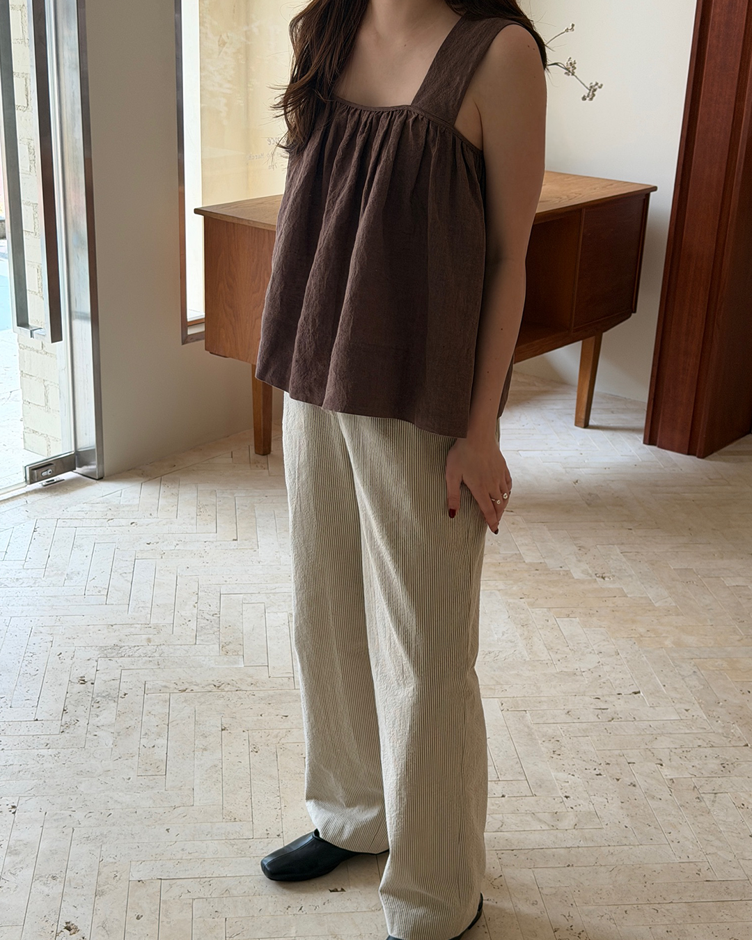 S-T-H Tent Blouse in pure Linen. Designed for an airy fit with wide straps and gentle gathers that make this the perfect Tent Blouse. It's a ten out of ten(t)!