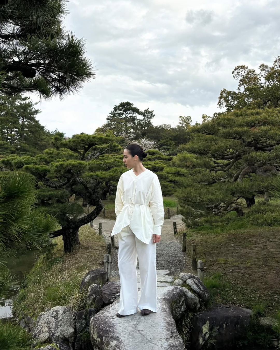 S-T-H Tulip Shirt in structured Organic Cotton. An ode to the form of Tulips with a gentle curved hem, a petal overlap detail at the back, and a curved cuff finishing. Designed for a softly structured and delightfully oversized fit. Made with lustrous pearl buttons down the front, two sash openings on the side seams to thread the sash through in a multitude of ways. Wear over Bistro Dress or buttoned-down as an overshirt with Studio Trousers.