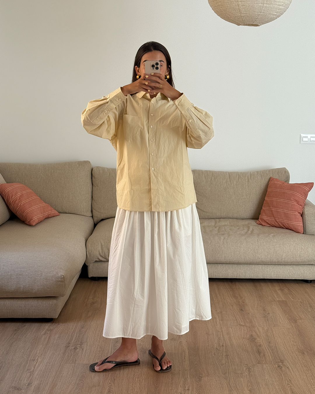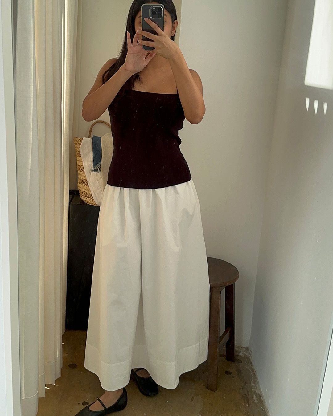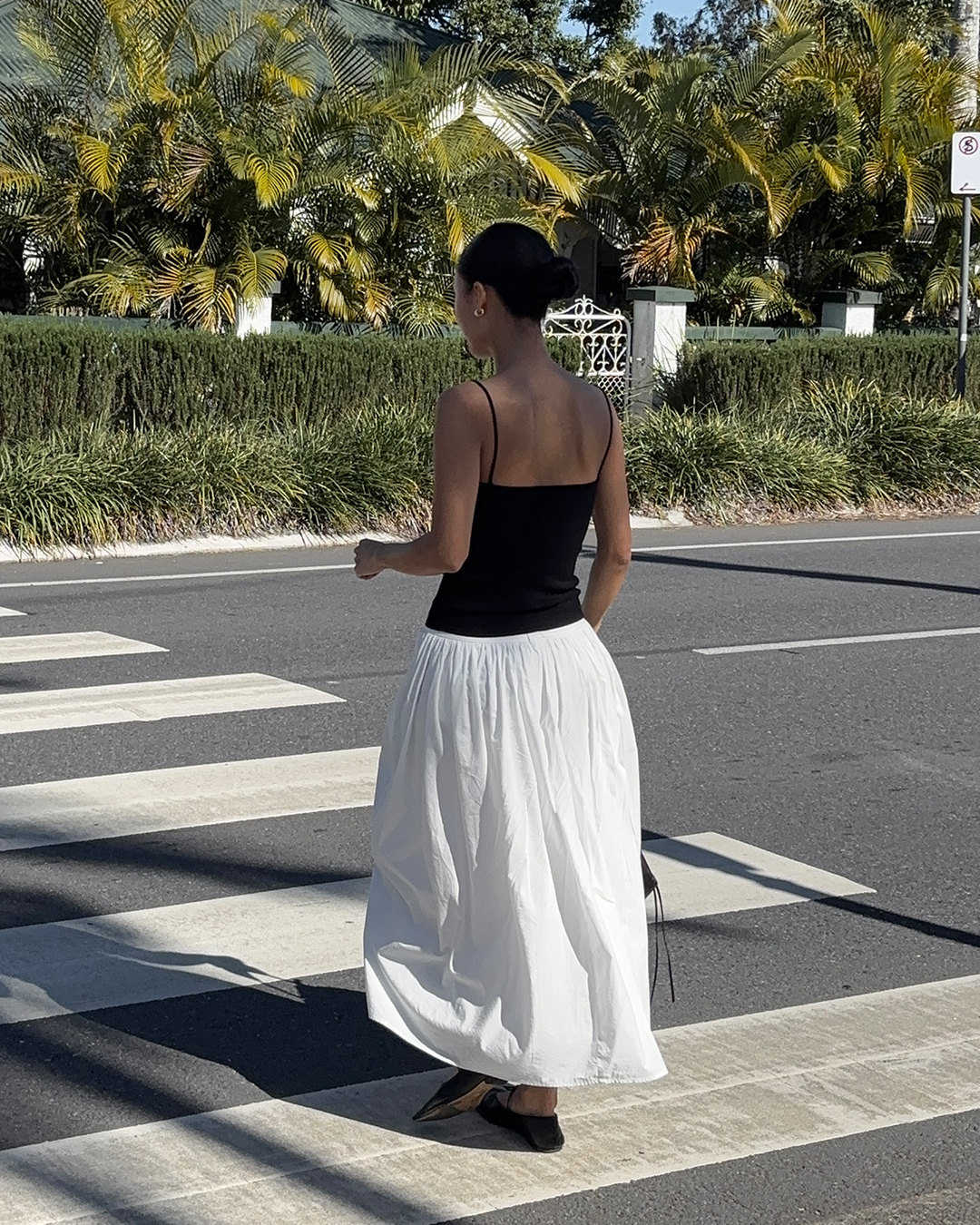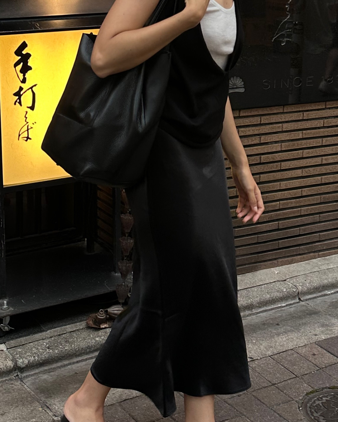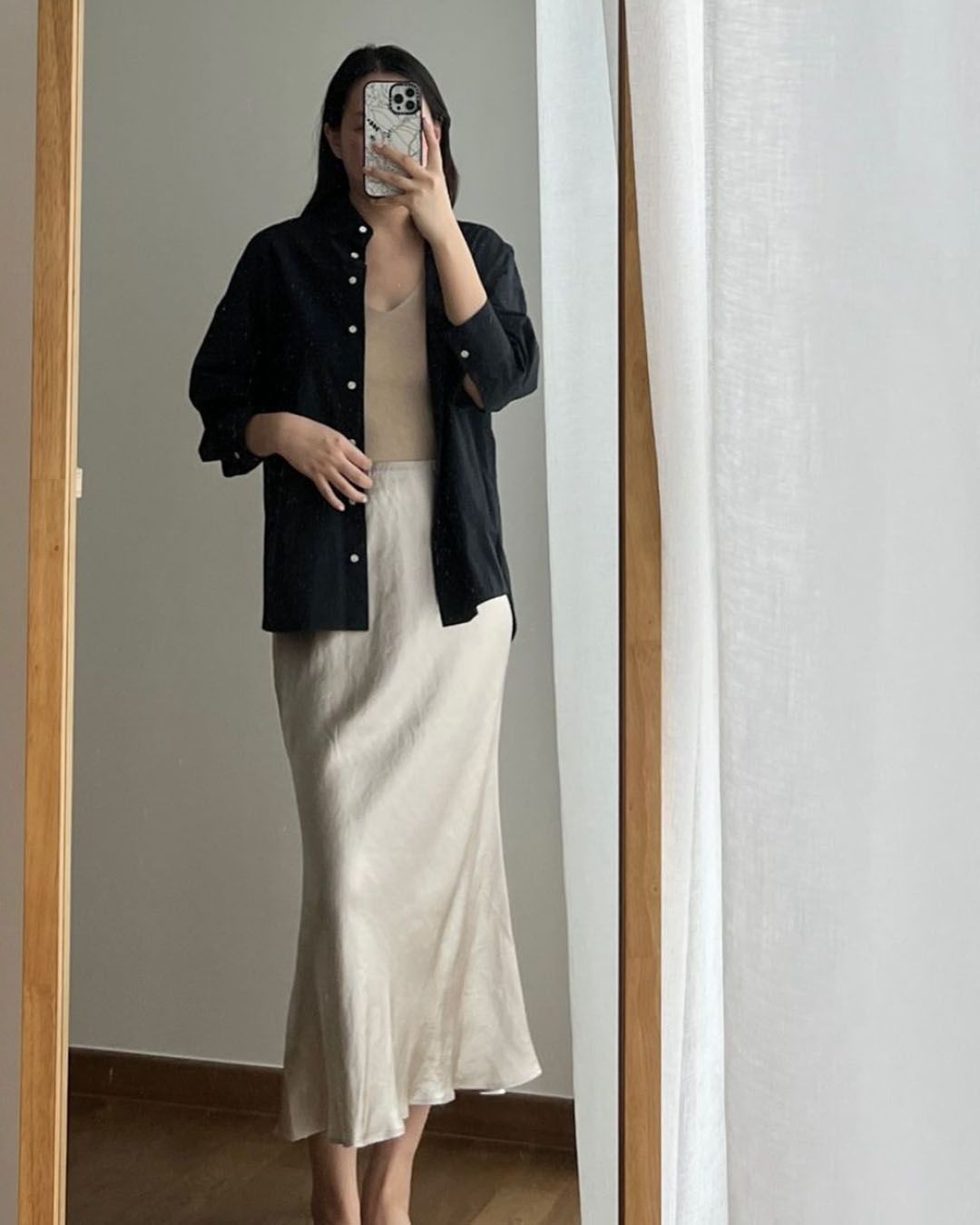 It's taken me a long time to decide on getting a slip skirt and I'm so glad I did a the recent restock! The skirt is gently elasticized and features a little bias cut that gives the illusion of a mermaid / hourglass figure. Can't wait to pair this with my Studio Shirts for a casual yet chic look!