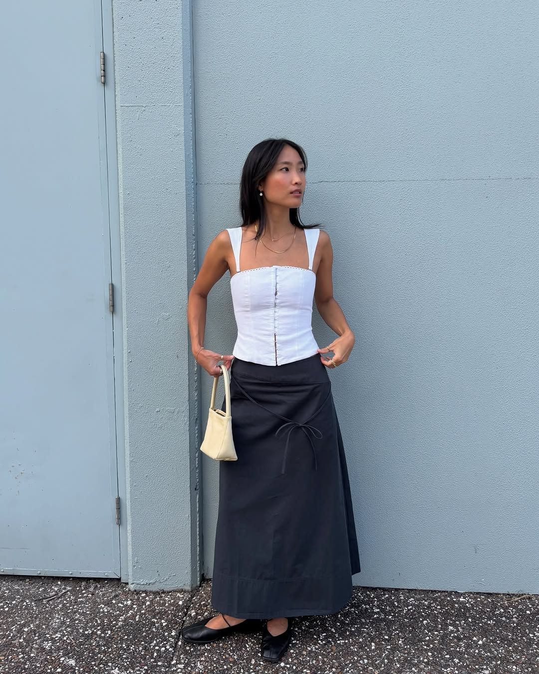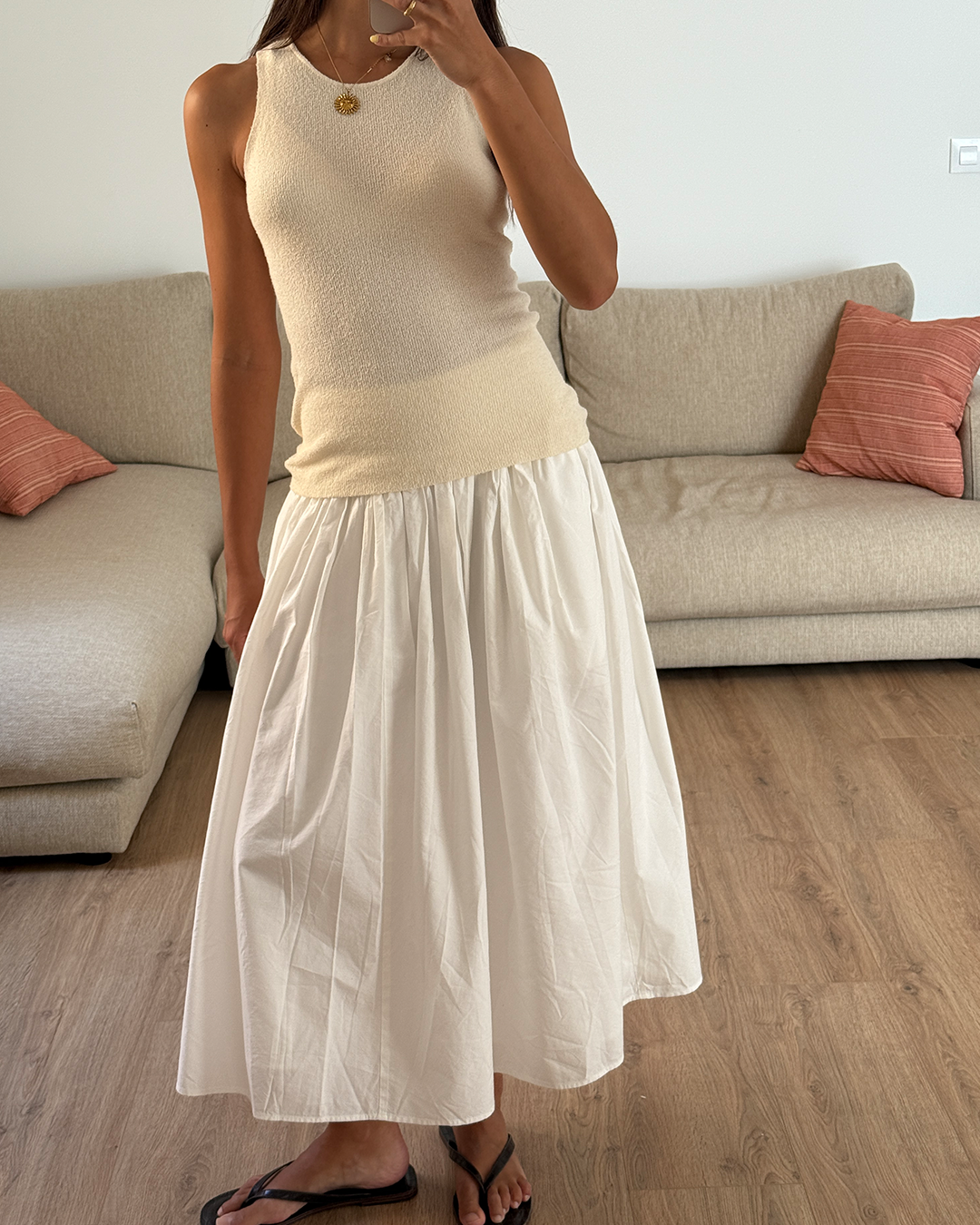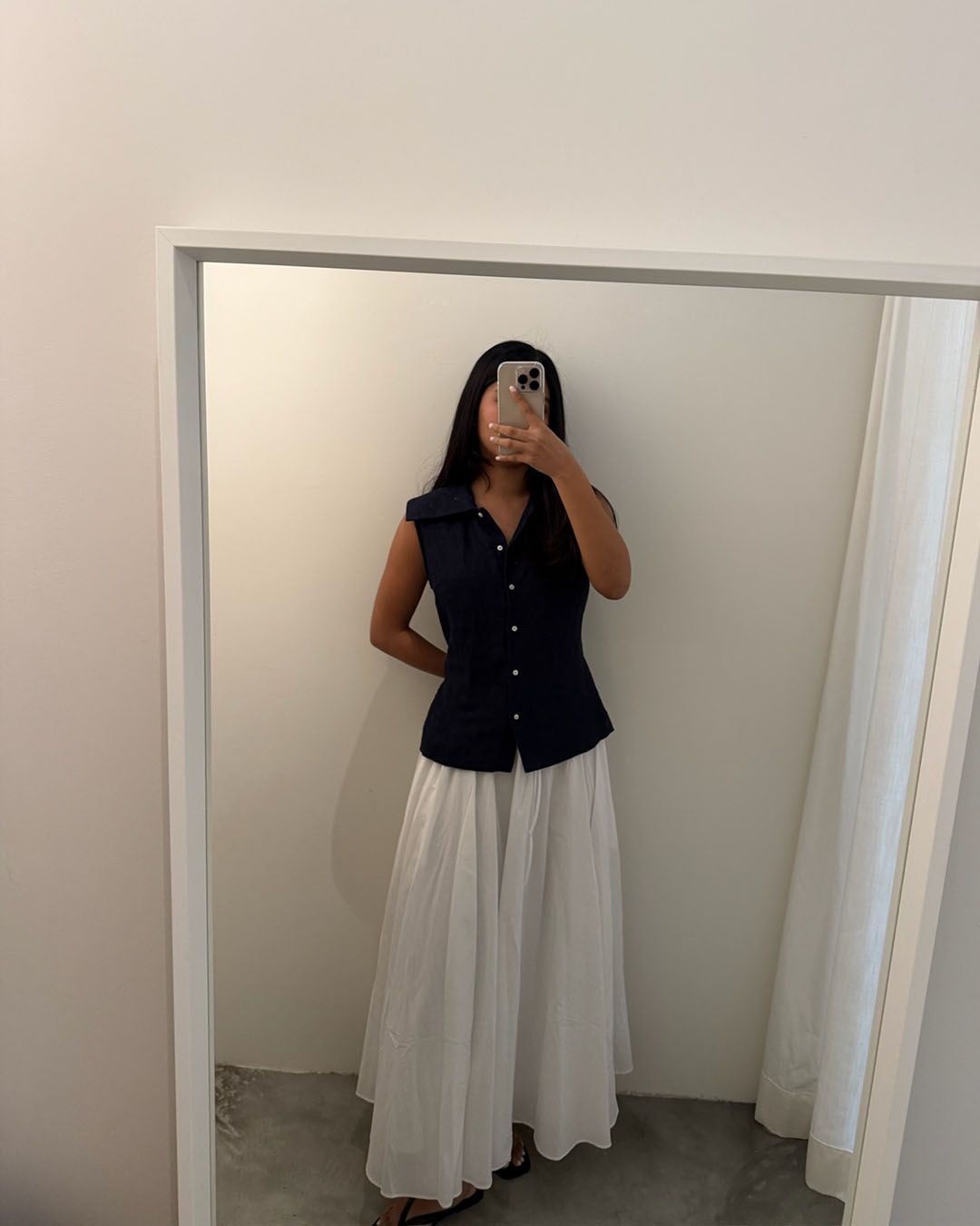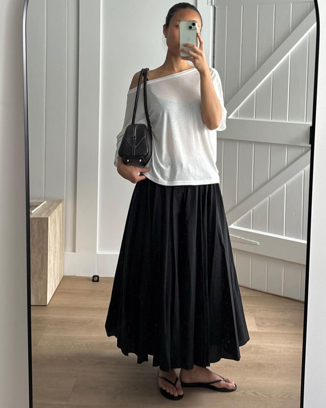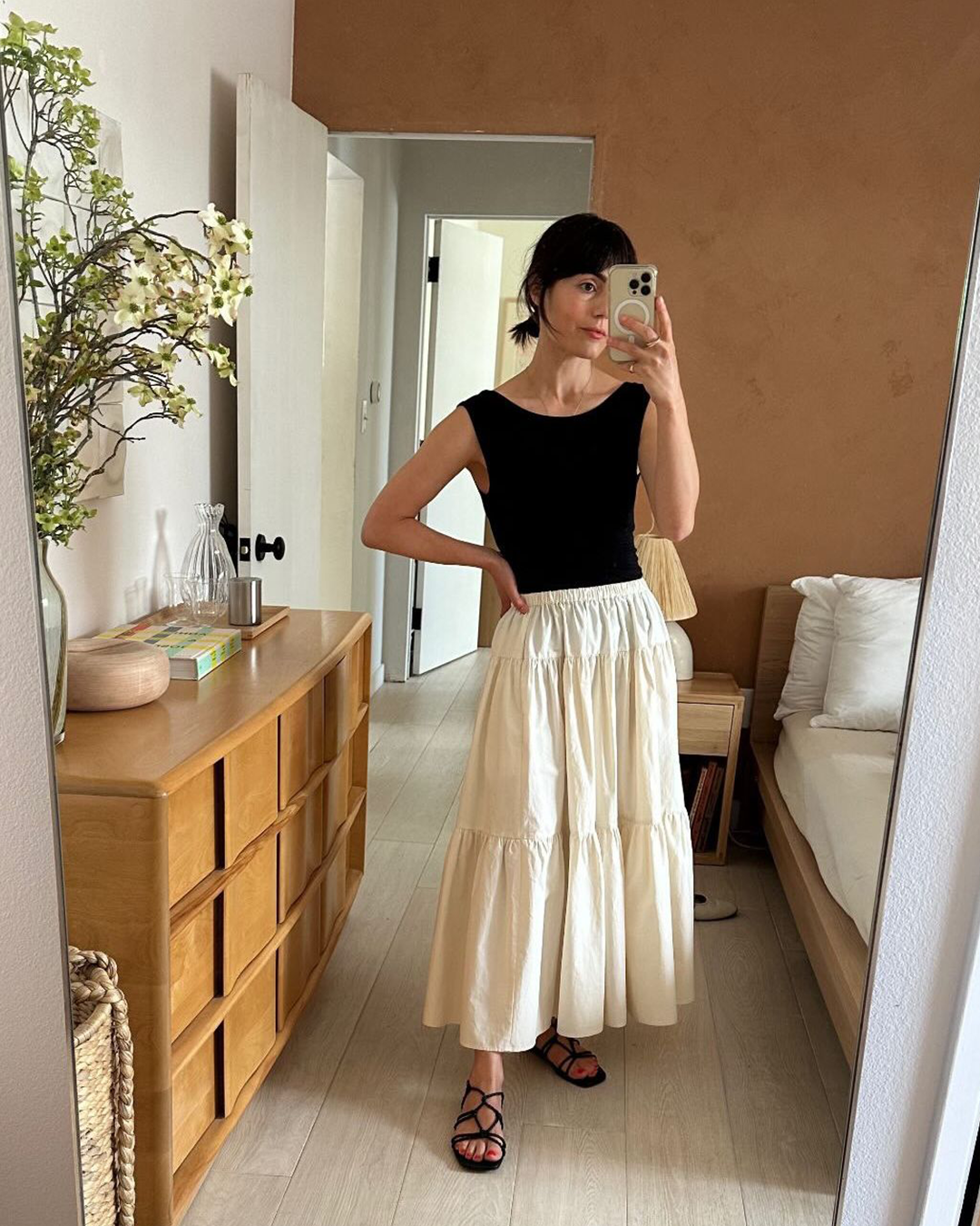 It's taken me a long time to decide on getting a slip skirt and I'm so glad I did a the recent restock! The skirt is gently elasticized and features a little bias cut that gives the illusion of a mermaid / hourglass figure. Can't wait to pair this with my Studio Shirts for a casual yet chic look!