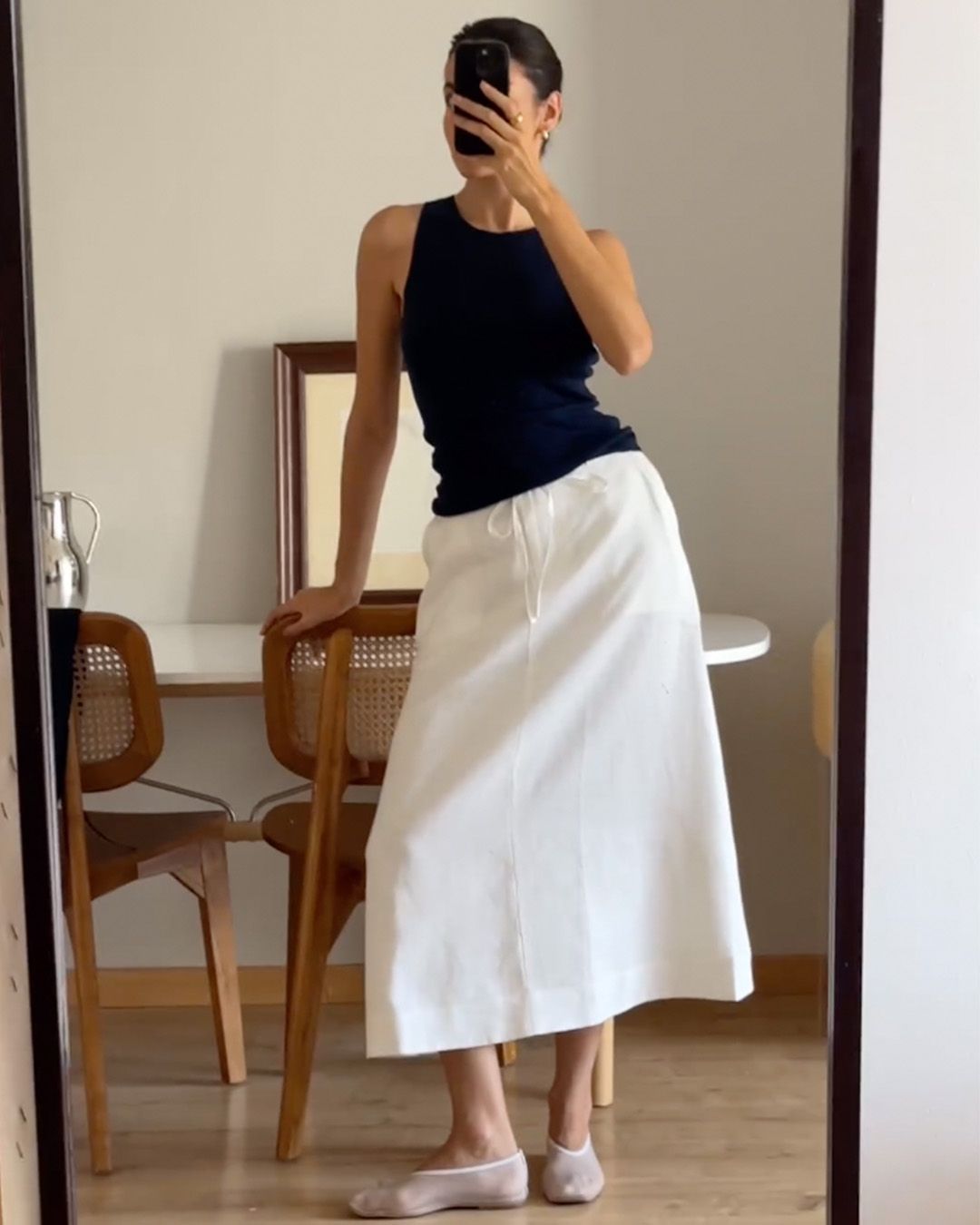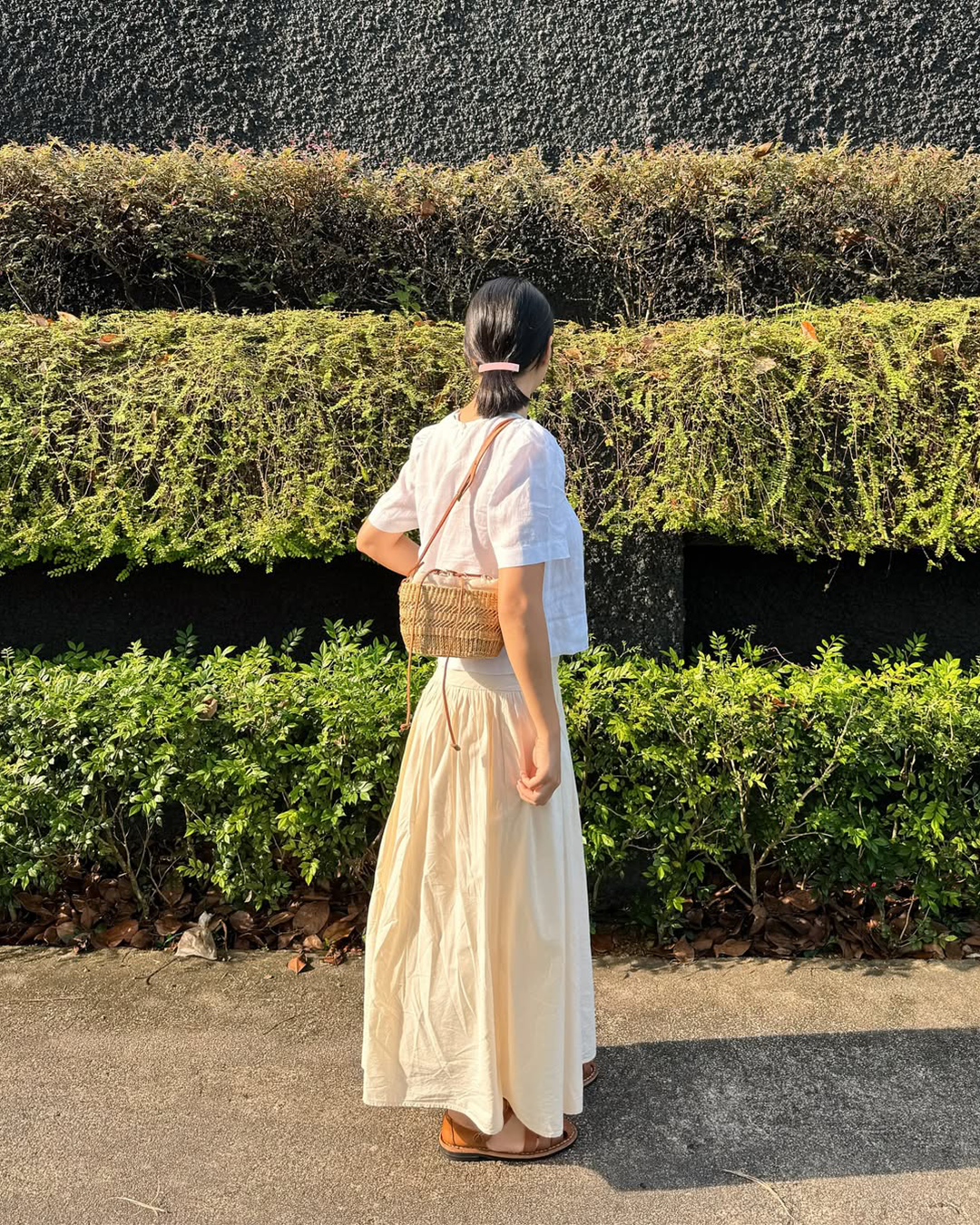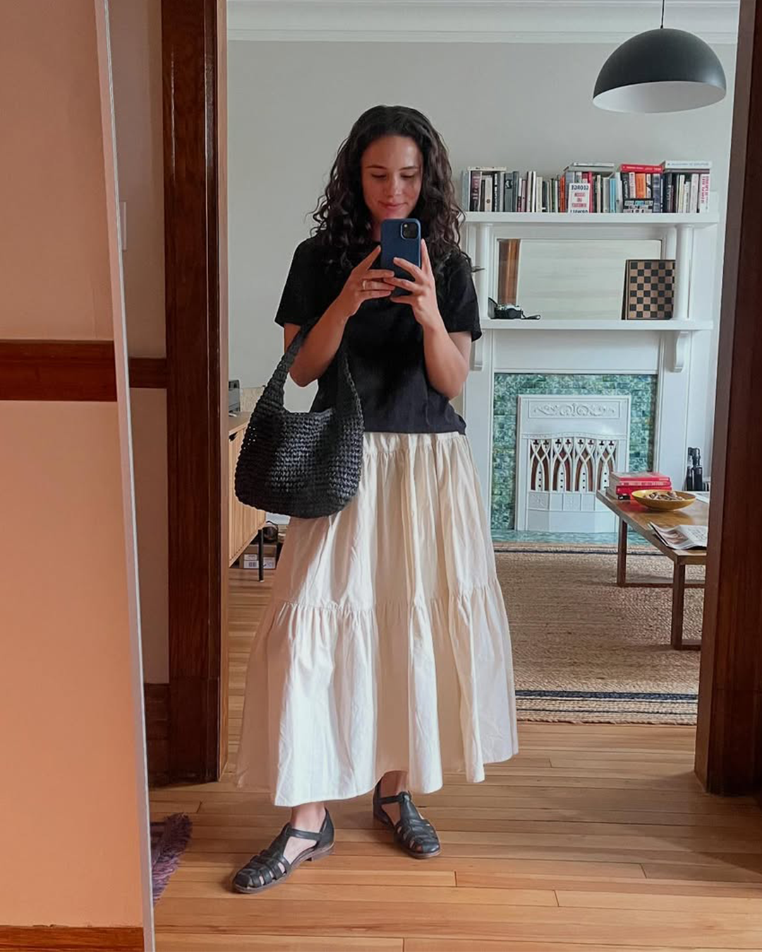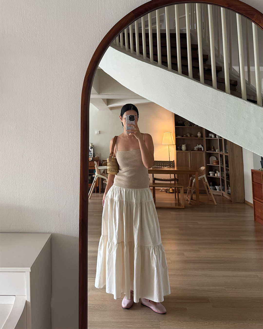 Stopped by StH and decided to try the House Tee and Teacake Skirt. I love how comfortable yet chic this look is. The House Tee is so underrated. It looks great with pants/skirts/shorts, everything! It is my most worn tee for casual days. It's slightly sheer (I love!) and the texture of the tee is so pretty.