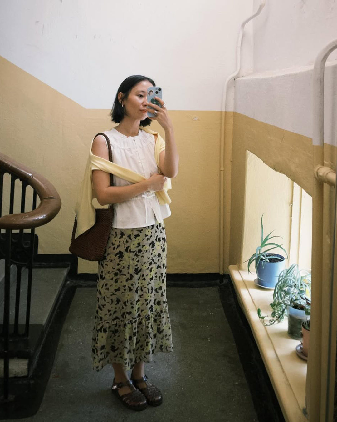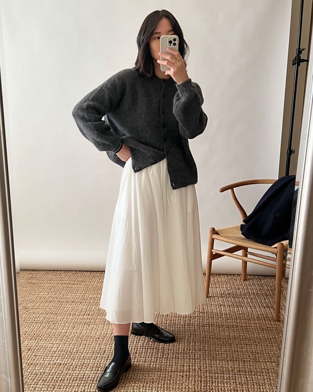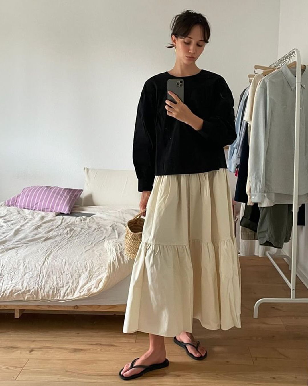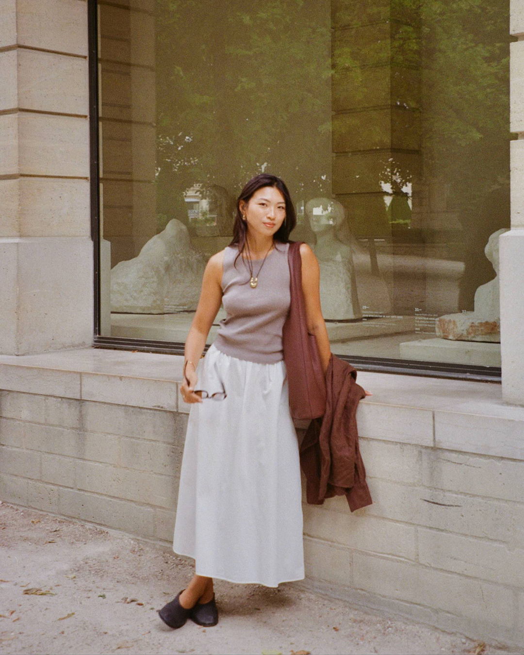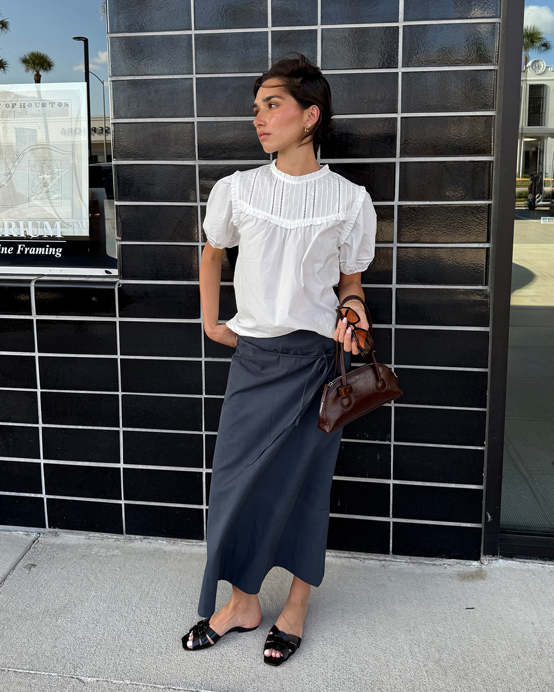 Stopped by StH and decided to try the House Tee and Teacake Skirt. I love how comfortable yet chic this look is. The House Tee is so underrated. It looks great with pants/skirts/shorts, everything! It is my most worn tee for casual days. It's slightly sheer (I love!) and the texture of the tee is so pretty.