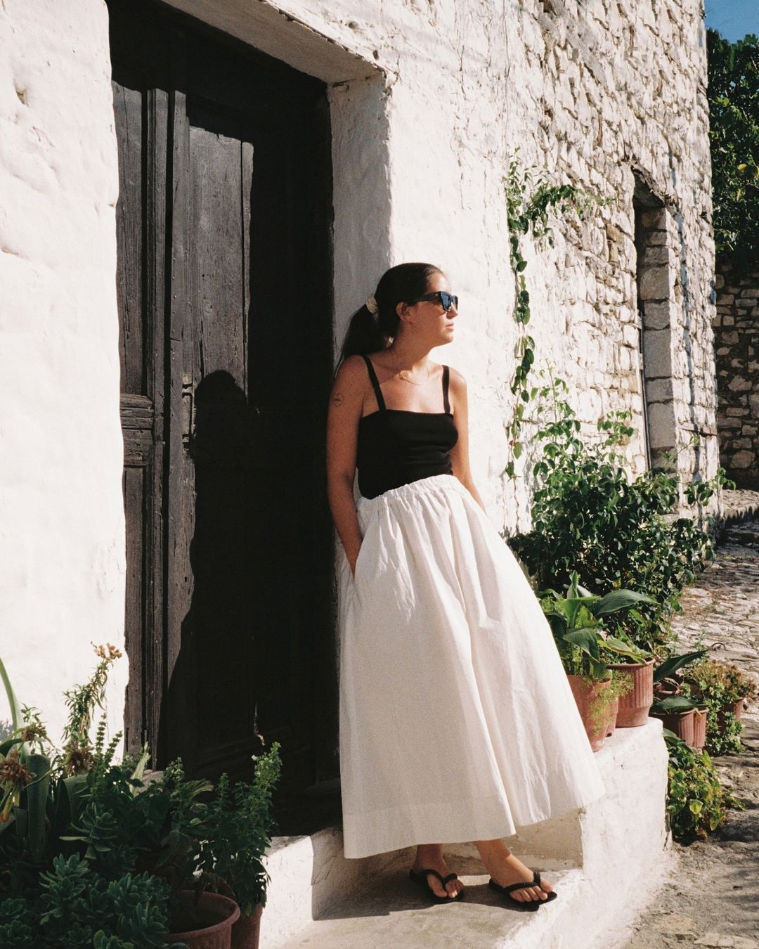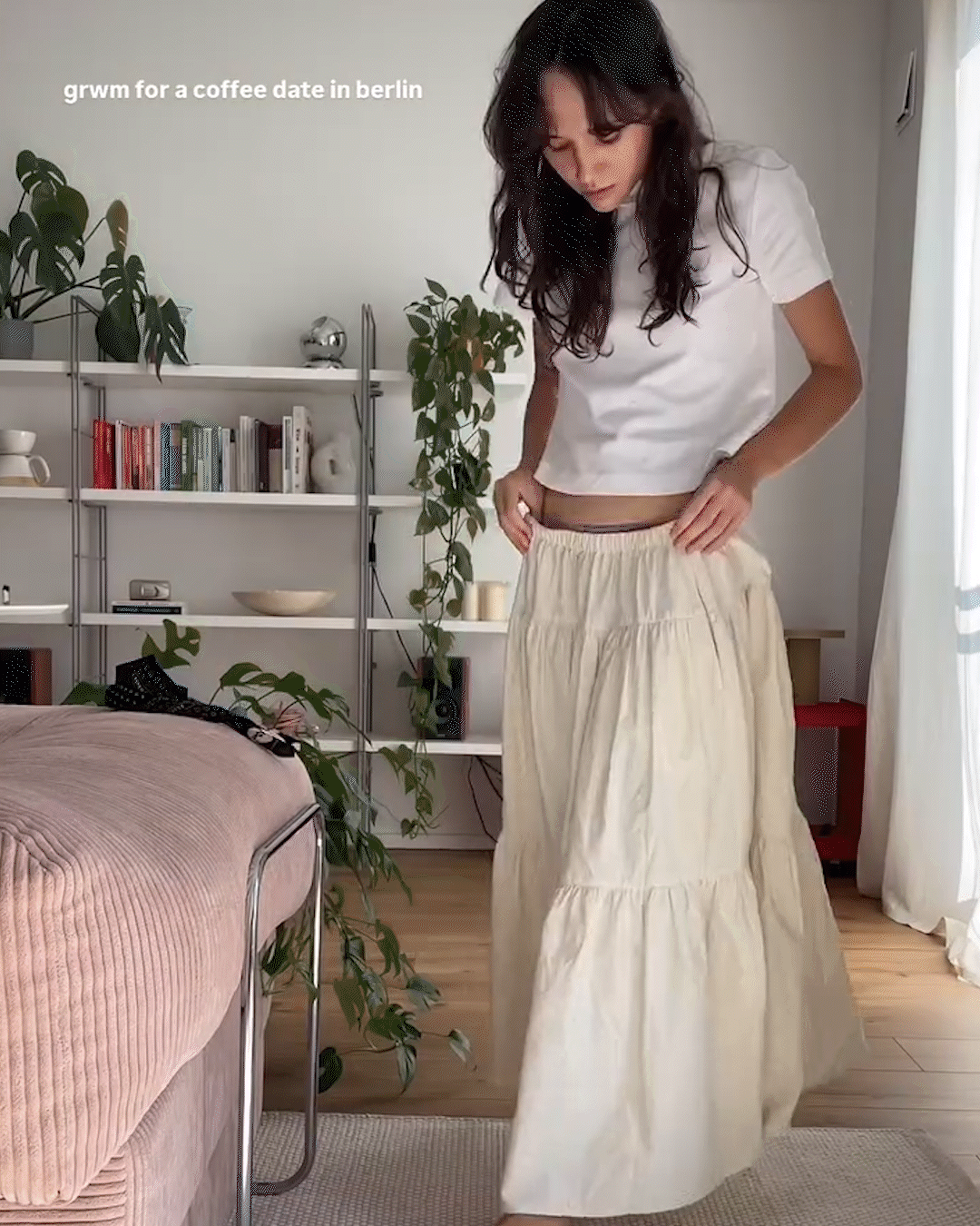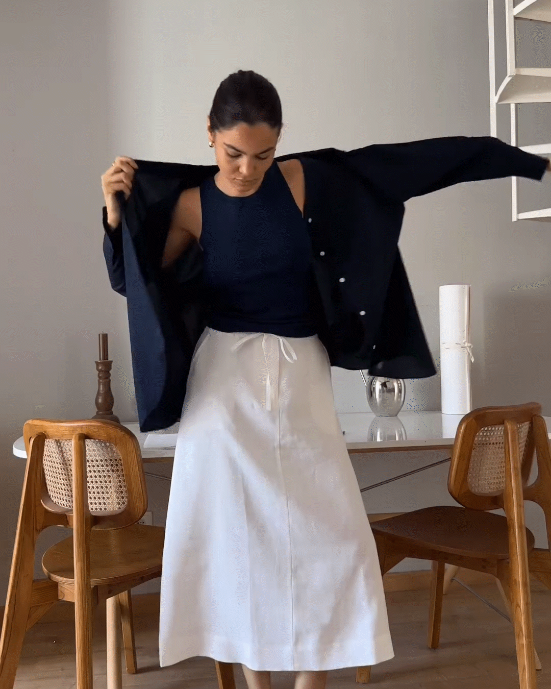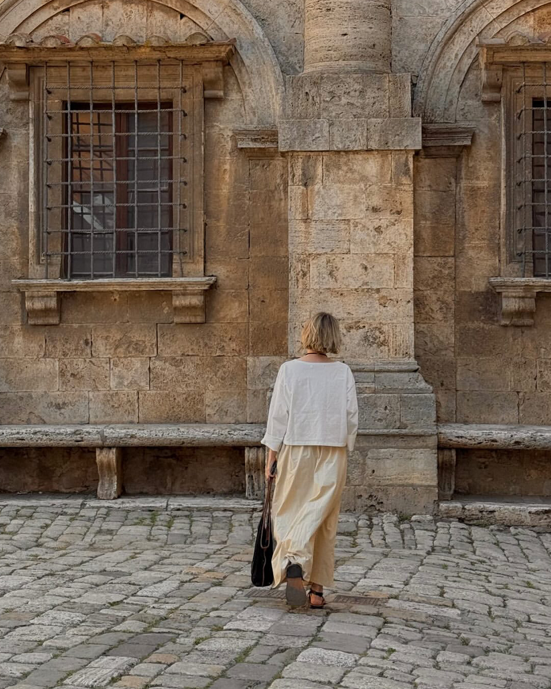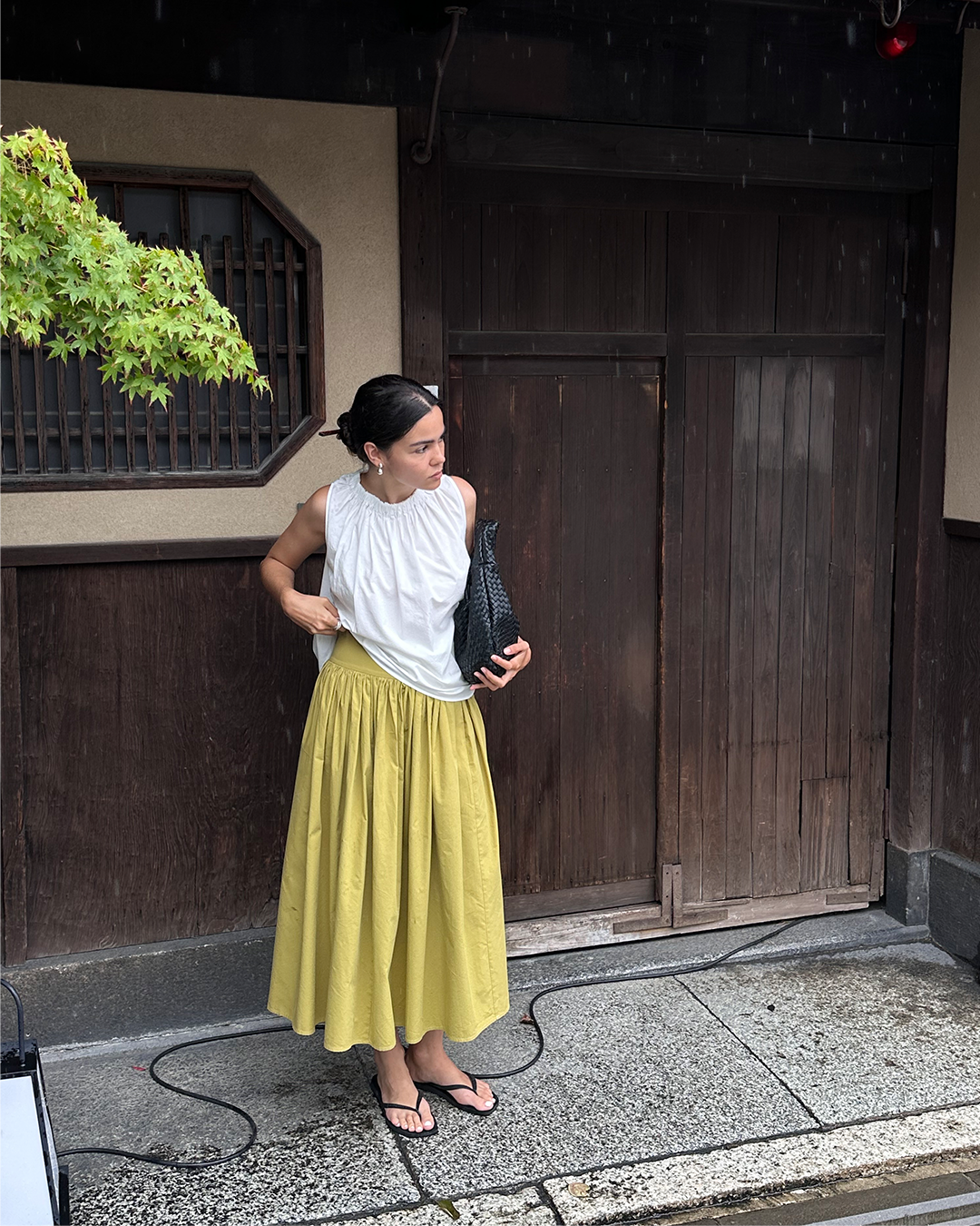 The graceful flow and movement of this skirt is second to none. It follows you so elegantly as you walk! The crinkled linen texture is gorgeous and I live for details like these.
