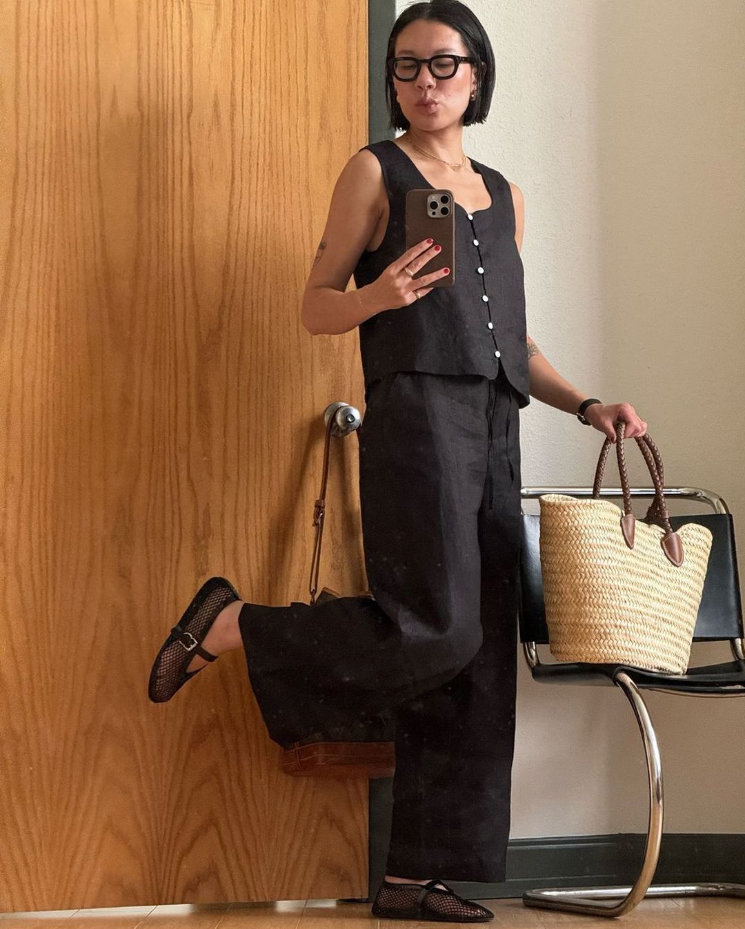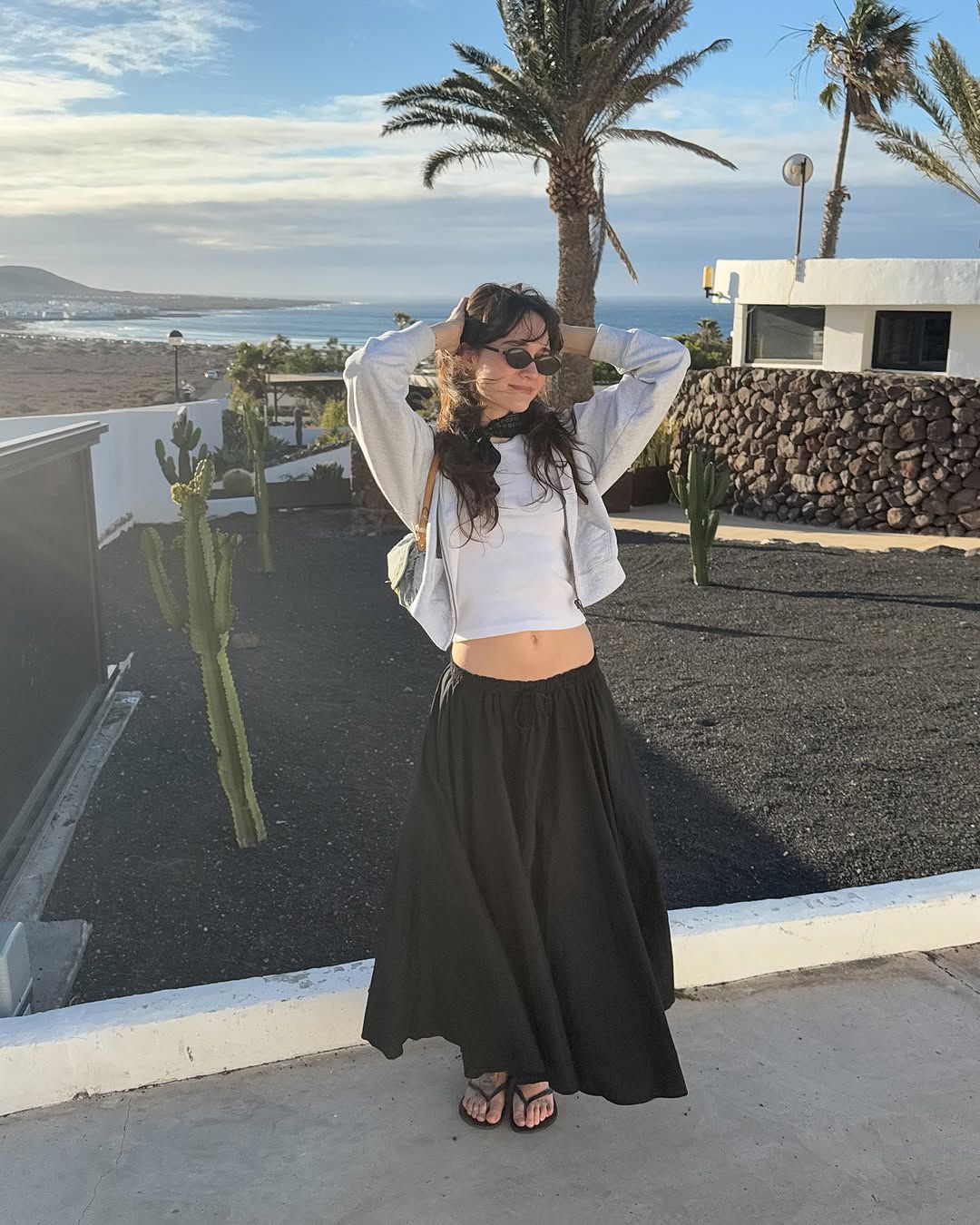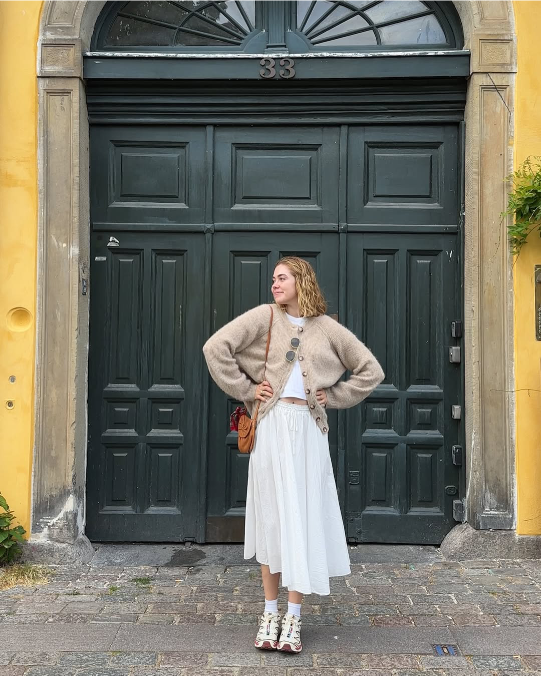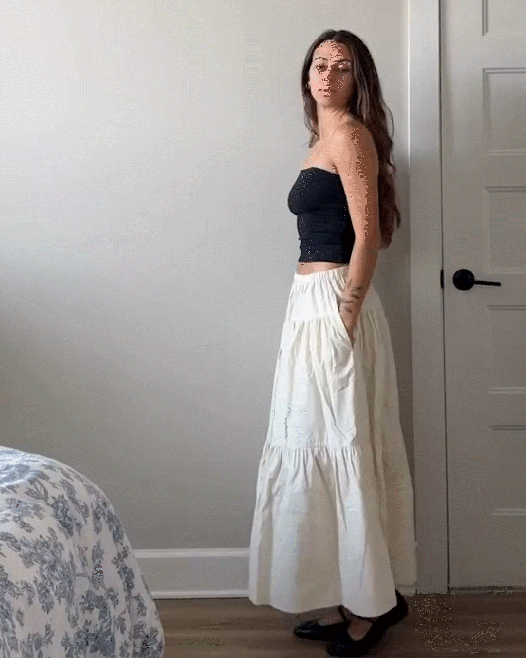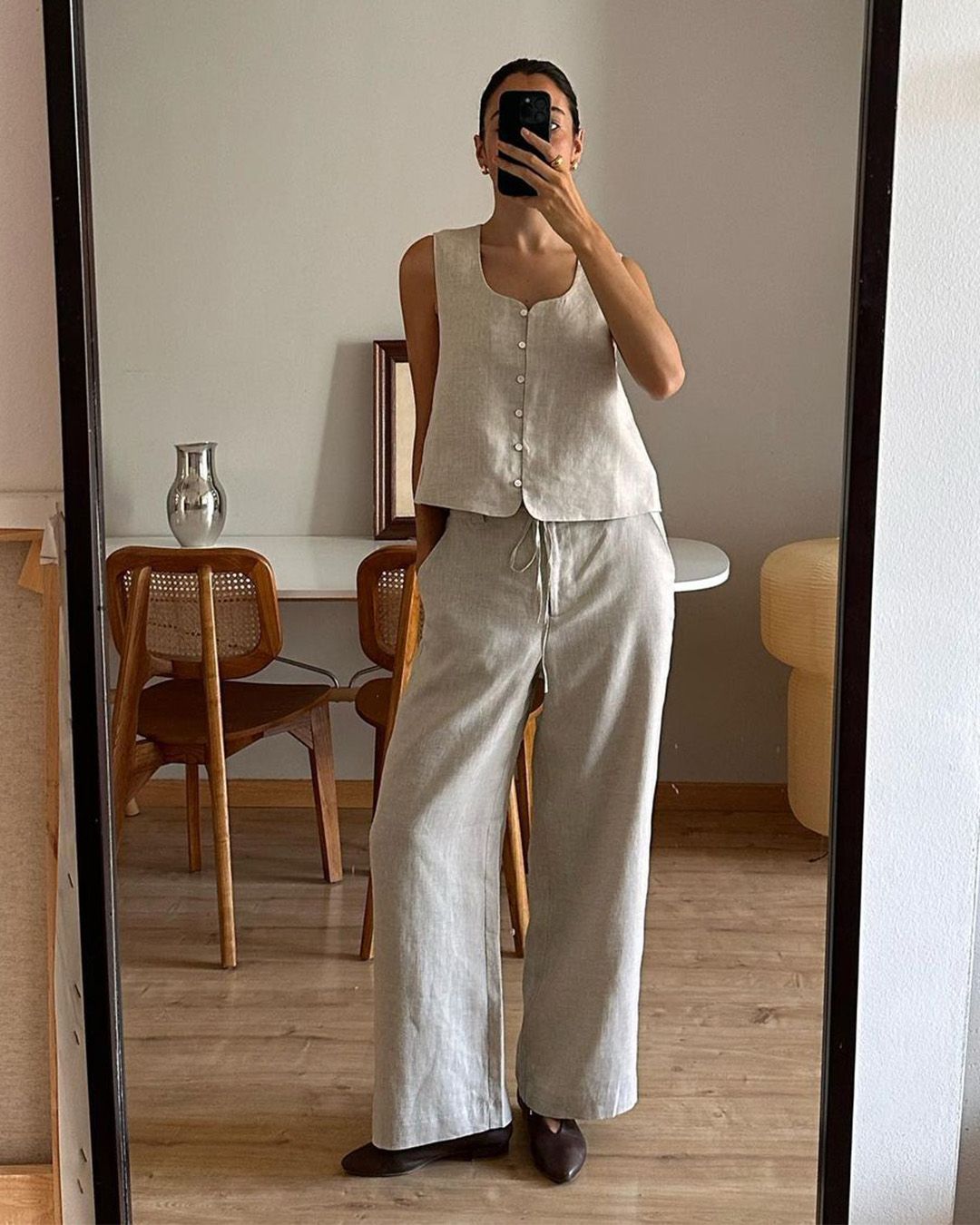 The graceful flow and movement of this skirt is second to none. It follows you so elegantly as you walk! The crinkled linen texture is gorgeous and I live for details like these.
