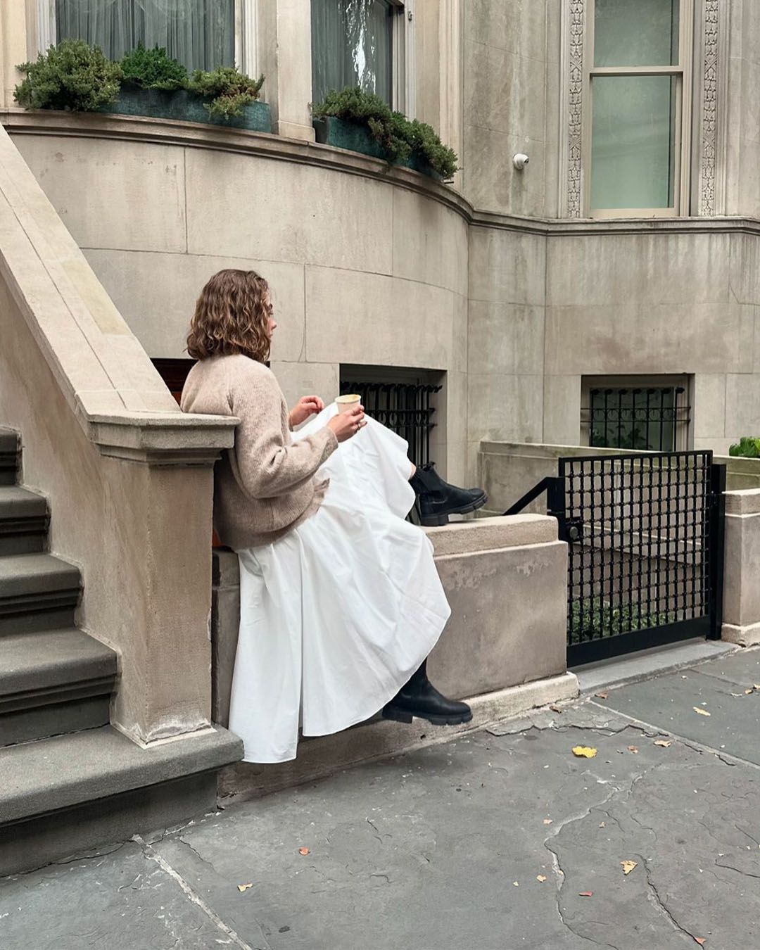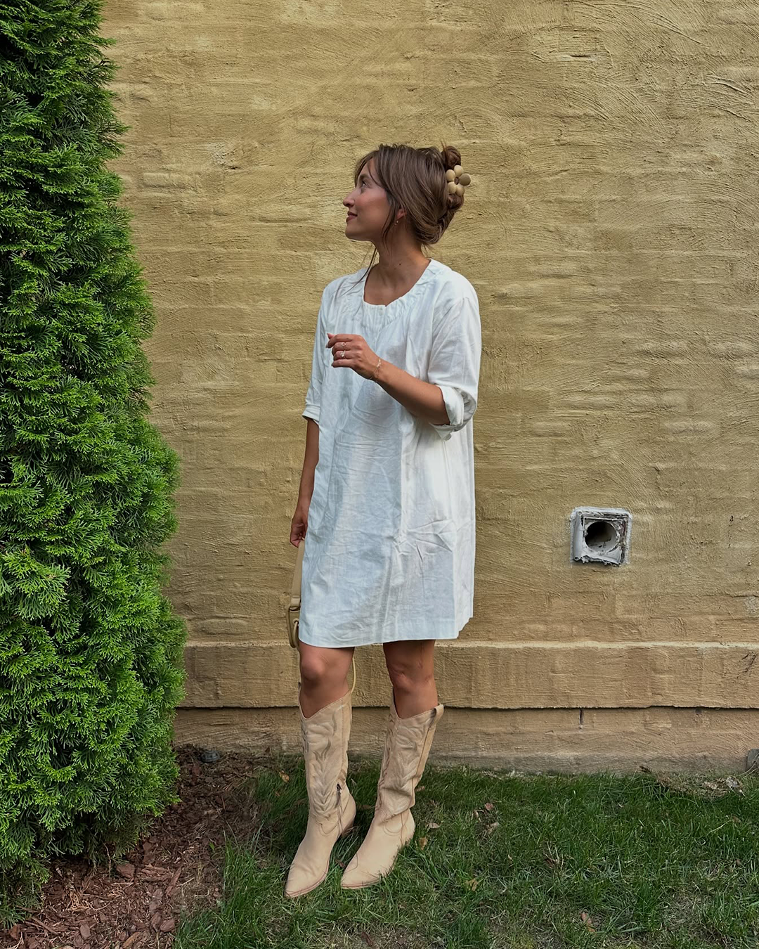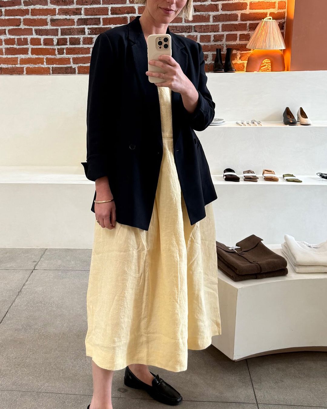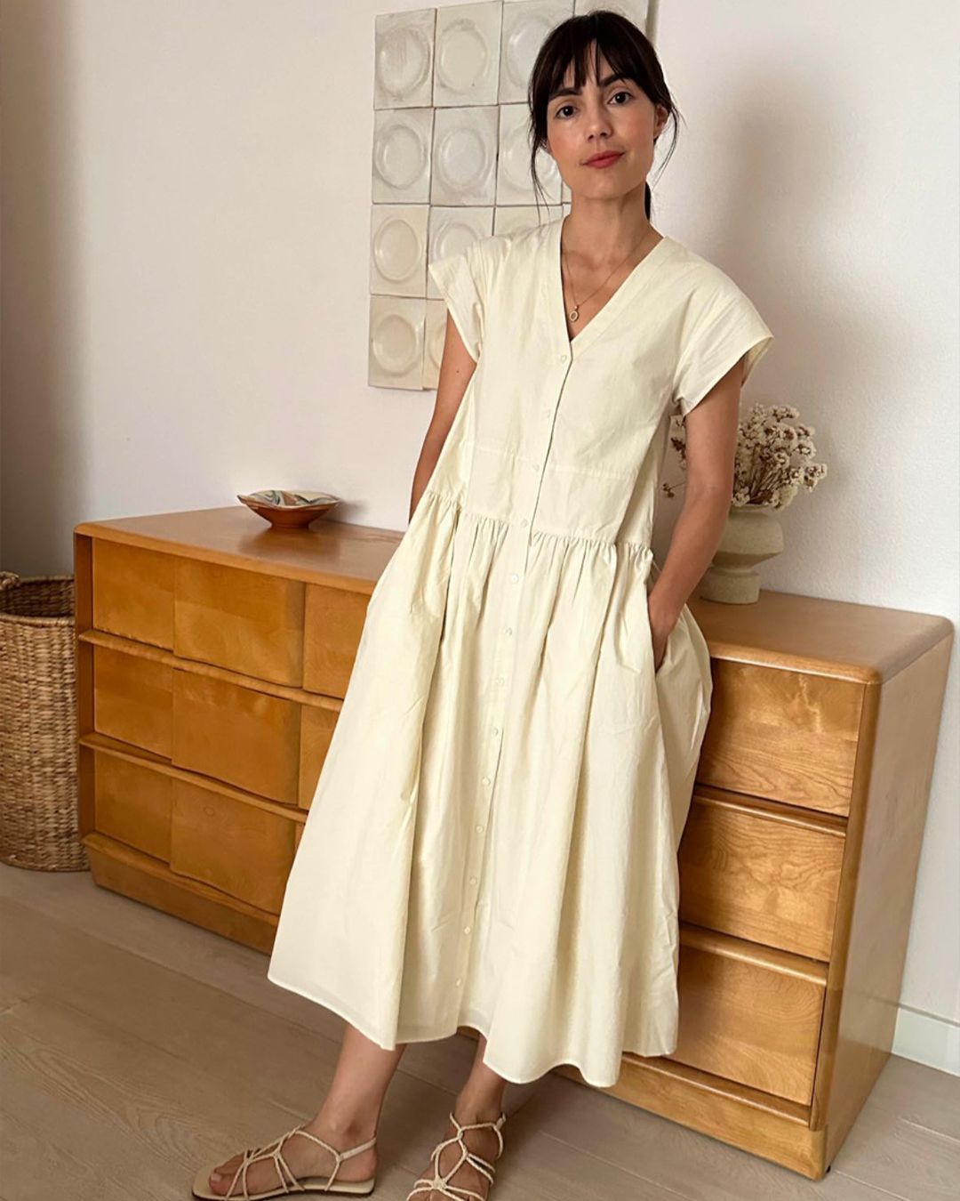 I love the Day Dress in Dough! It's even better than I imagined it to be. Now I'm not sure why I waited 3 months to get it. The colour is really special. It has the right amount of structure and flow. Love it!