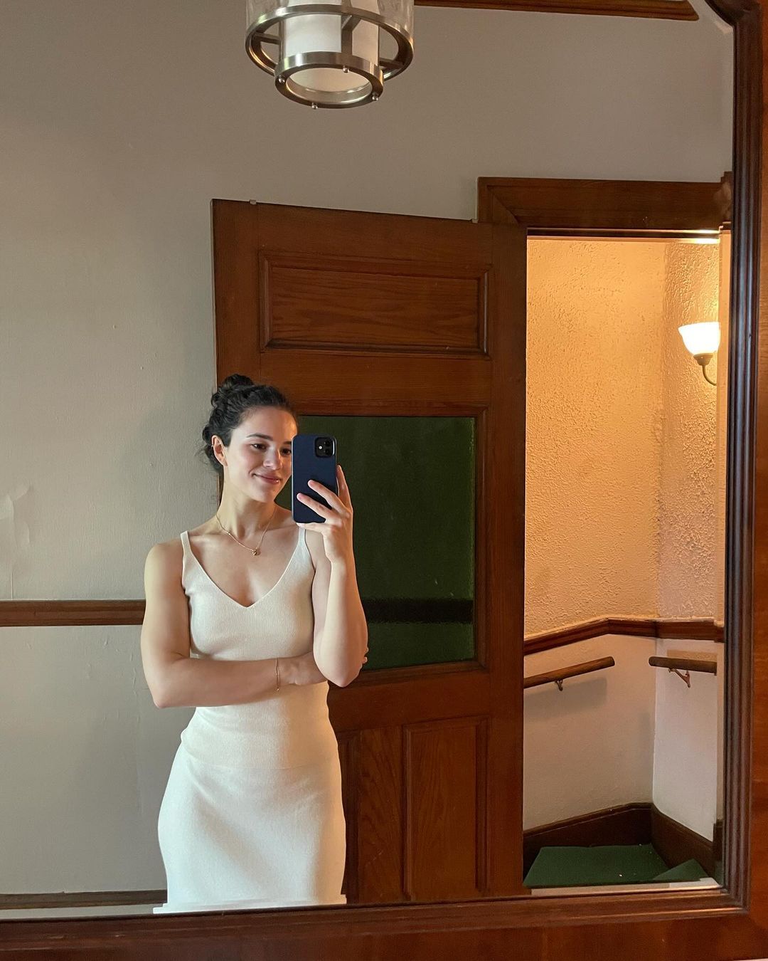 I knew I had to get this dress the moment I saw it! The dress is understated and well designed. It fits so perfectly... I'd recommend to size up if you're in between sizes, especially if you have a fuller bust!
