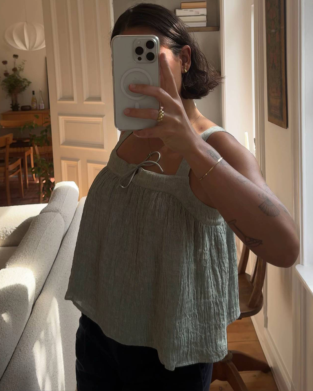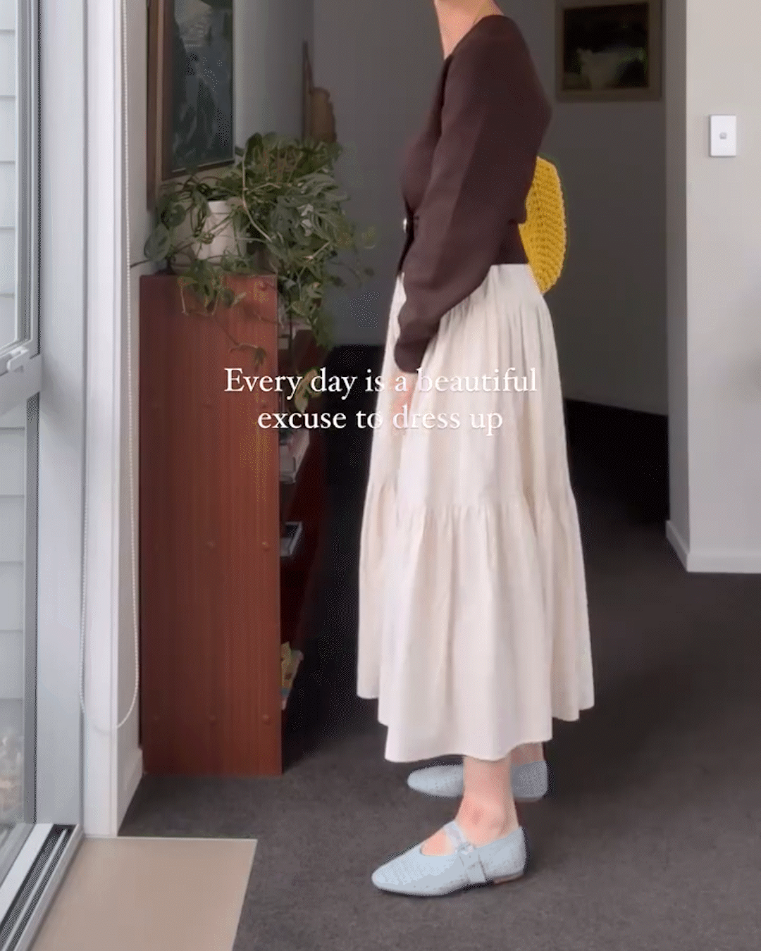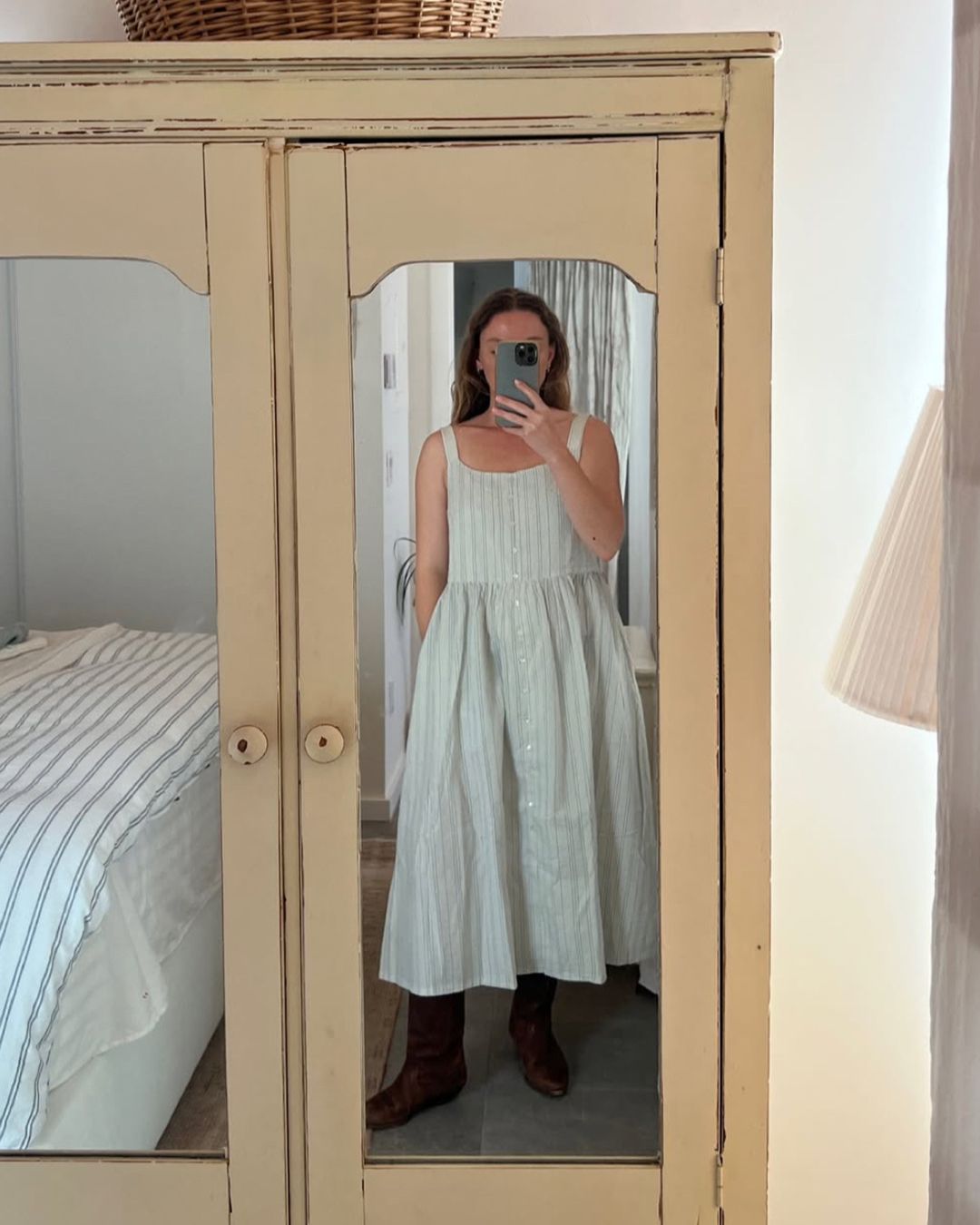 Hello! I received the Ingrid Blouse and Tiered Dress yesterday! I just wanted to let you know how much I love both pieces! The Tiered Dress has been on my wishlist since 2021 and I'm so happy it's now with me. It really is beautiful and the cutting is perfect. All my favourite pieces are now from Something to Hold. Thank you for making beautiful quality clothes.
