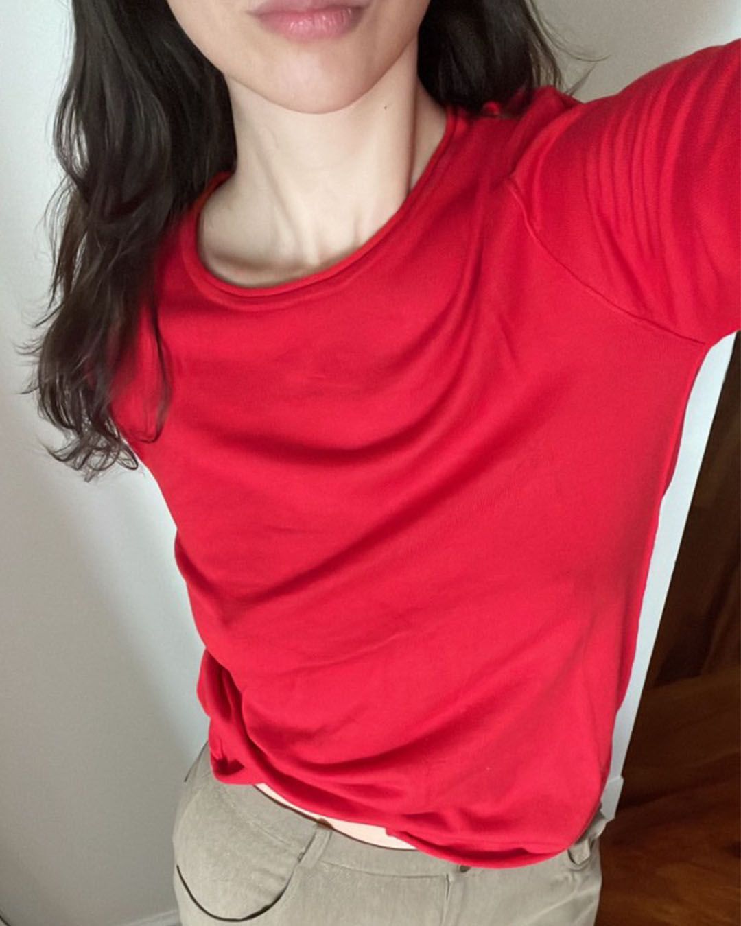 Hi Something to Hold team! Received my parcel on Saturday and just wanted to say that the Knit Tee in S fits me perfectly. Love that it's also lightweight and not too body hugging, plus it's of a good enough length to be tucked in over any bottoms. Have been searching for a longer length knit tee in a time where cropped knits are a trend. Super tempted to get the other colours too now.