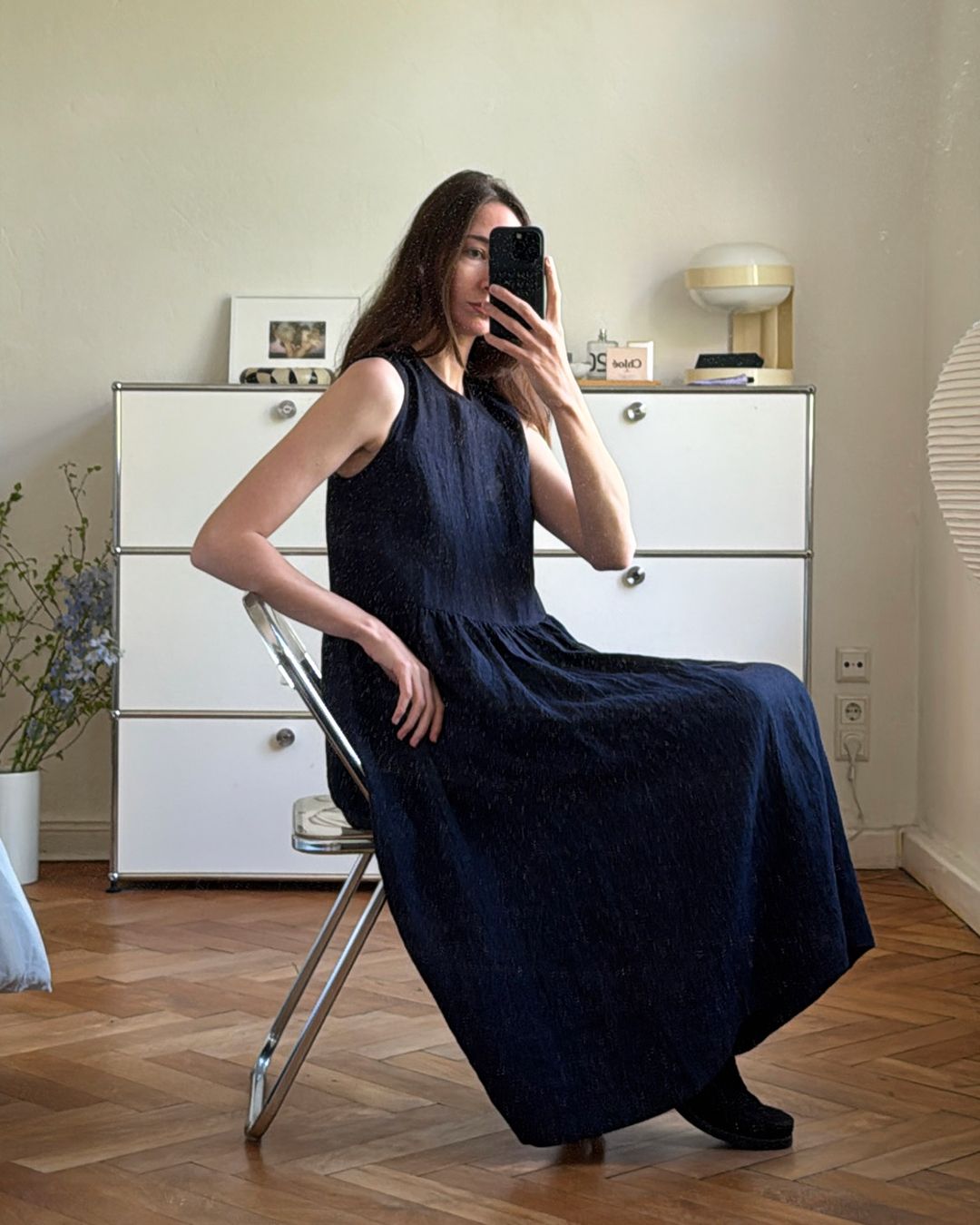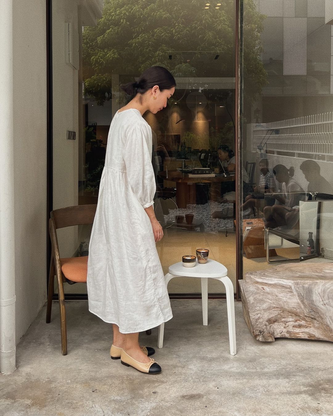 I got the Tulip Wrap Dresses in Ecru Linen and Black Tencel, and I love how they drape differently and create different moods on me because of the different fabrics. I also got my long-awaited dream dress, Double Tie Dress!! Also in Ecru Linen haha I ended up purchasing the Lily Pond one today because I was just blown away by how beautifully tailored everything is. It's so hard to come by dresses like these! Thank you for making them.