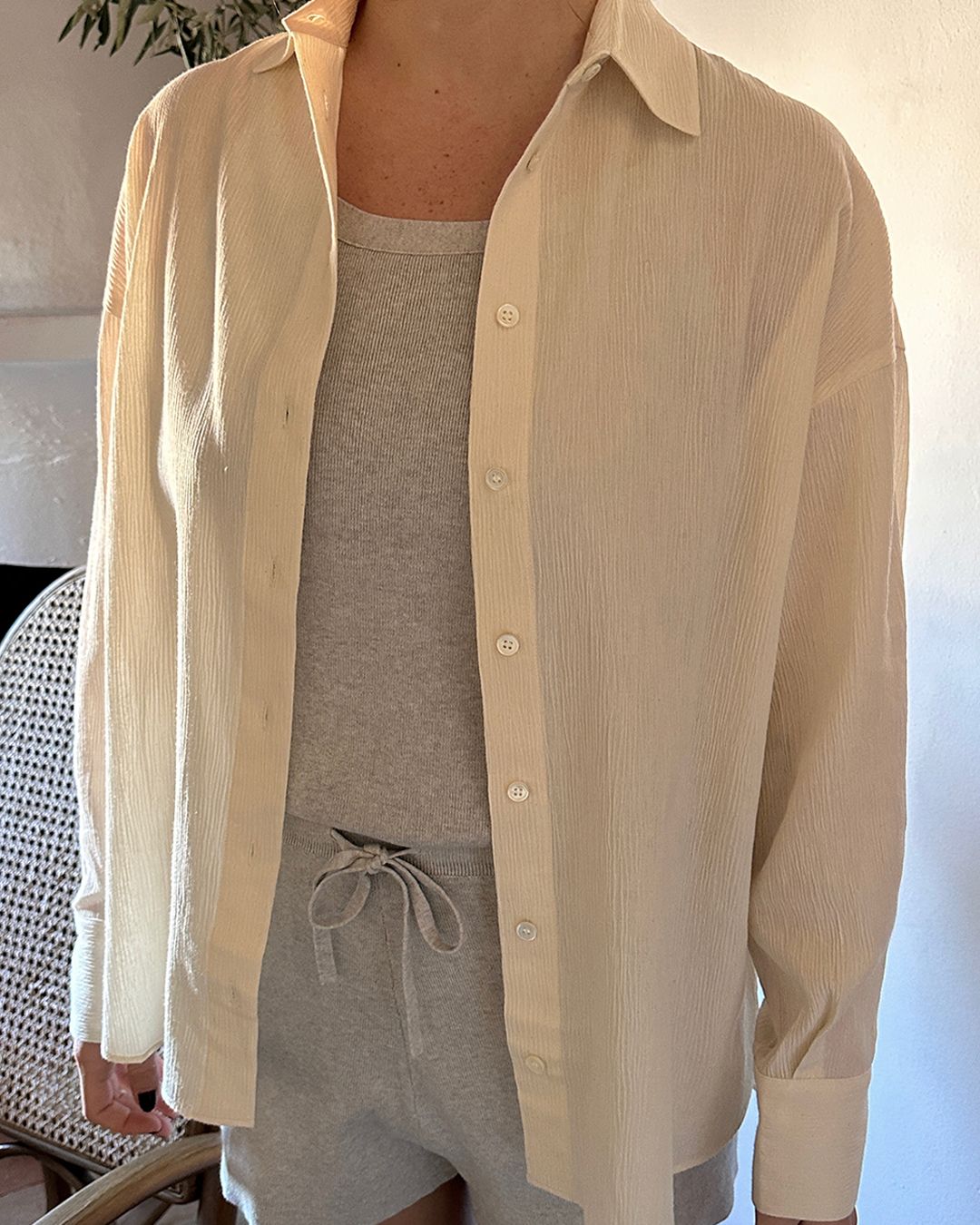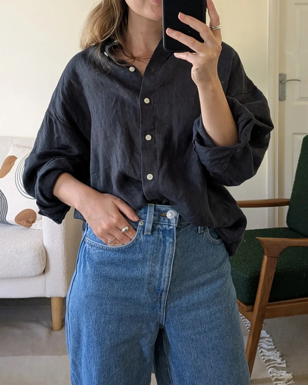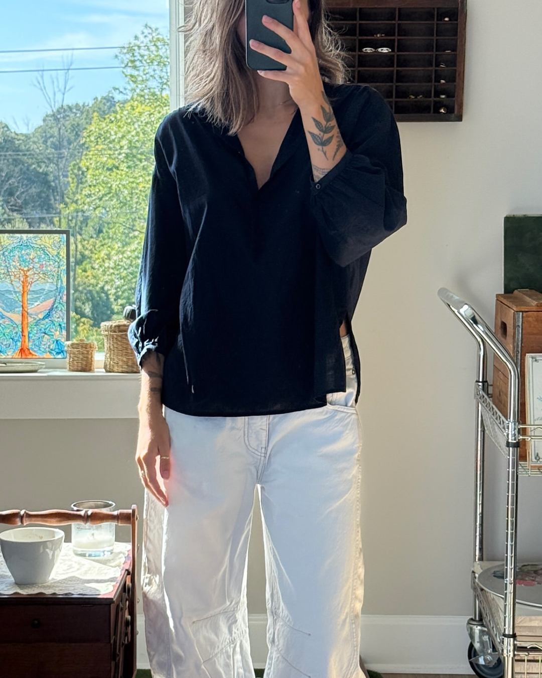 This Suzette Shirt is such a lovely layering piece. Love the rounded collar and boxy fit that just drapes so nicely because of the Tencel fabric.