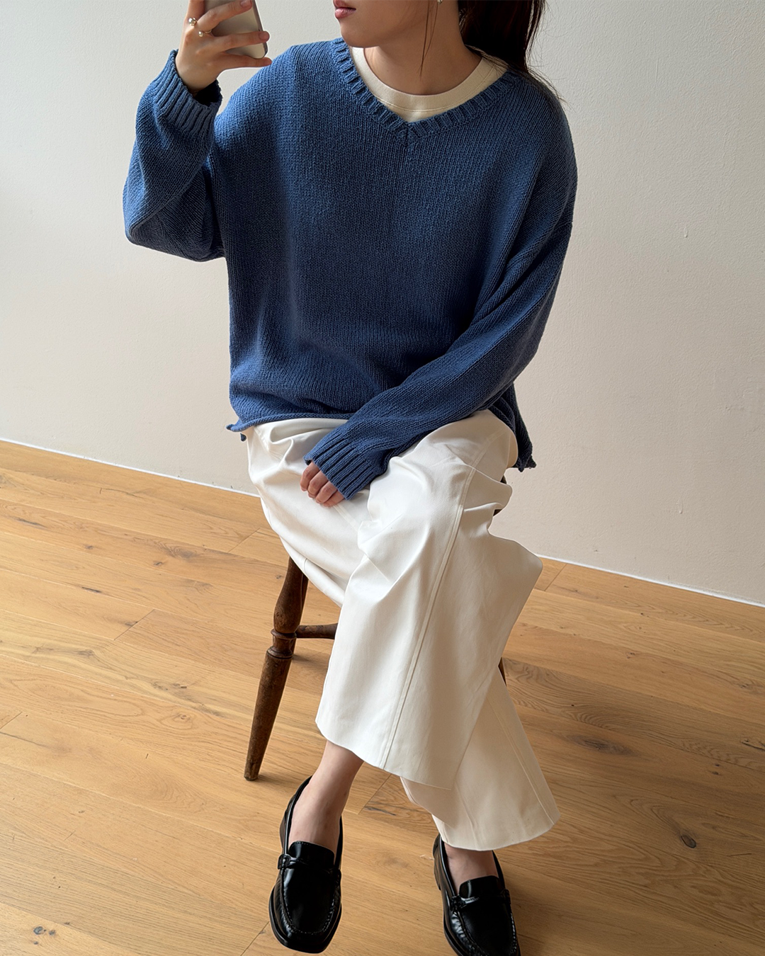 I've just tried on the Souffle Knit Blouse and first thoughts were oh it is quite heavy and pretty thick. I was totally wrong when I wore it. It didn't feel heavy at all and it didn't feel warm at all. The relaxed fit was great.