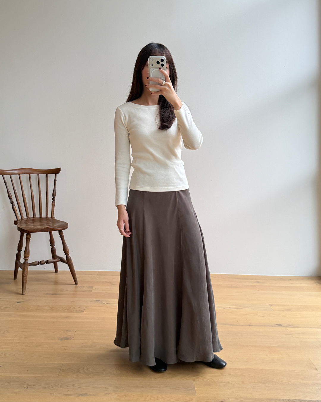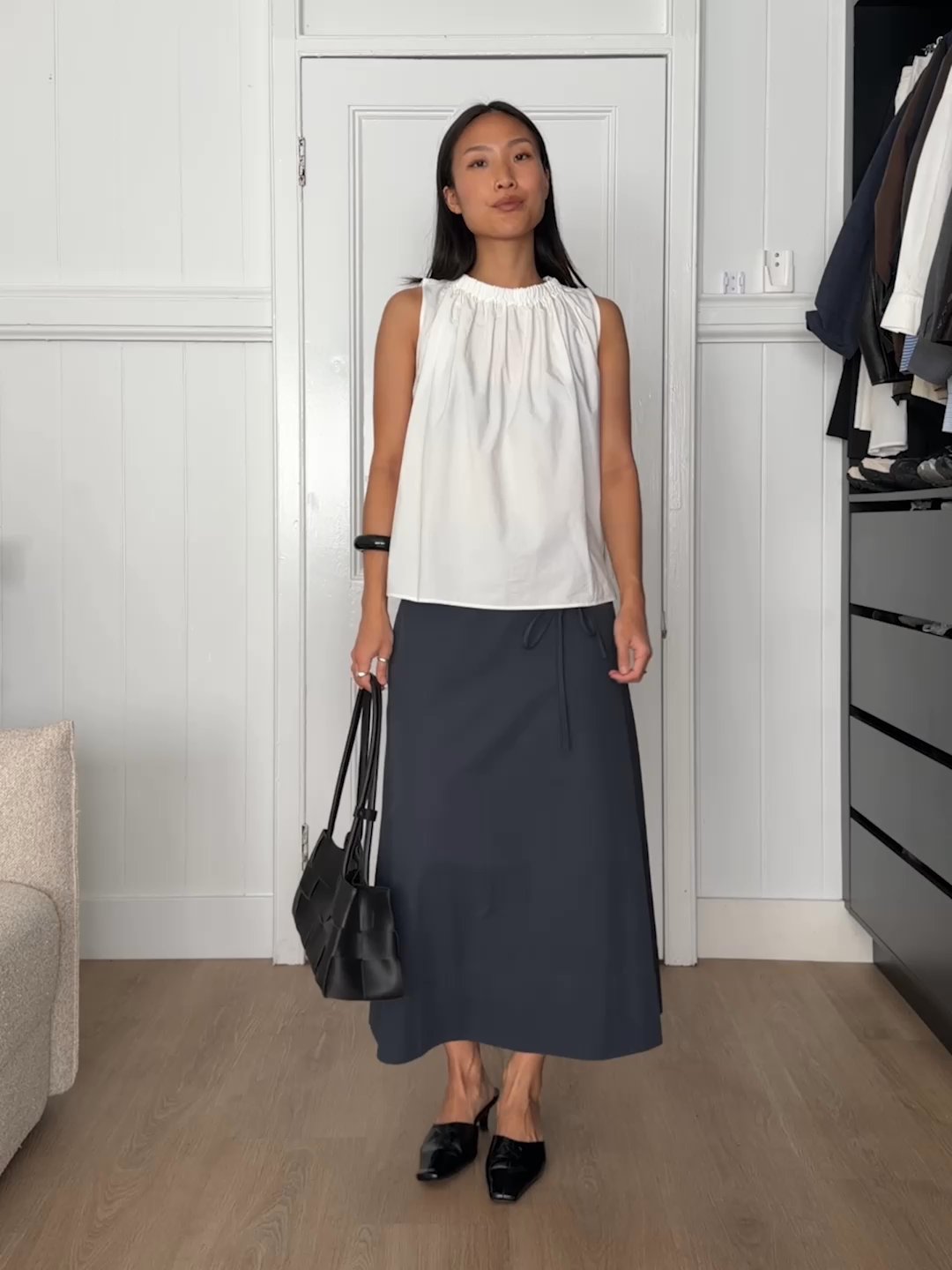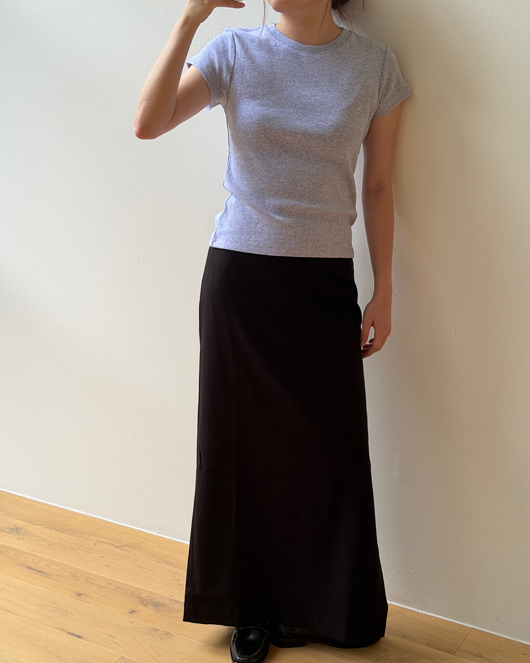 It's taken me a long time to decide on getting a slip skirt and I'm so glad I did a the recent restock! The skirt is gently elasticized and features a little bias cut that gives the illusion of a mermaid / hourglass figure. Can't wait to pair this with my Studio Shirts for a casual yet chic look!