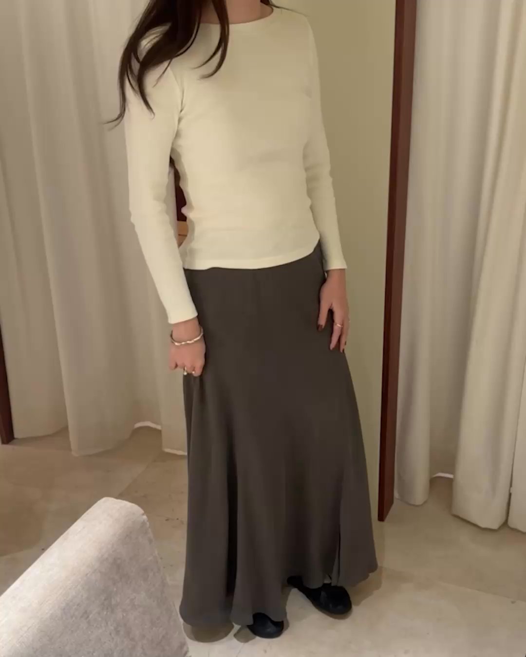 It's taken me a long time to decide on getting a slip skirt and I'm so glad I did a the recent restock! The skirt is gently elasticized and features a little bias cut that gives the illusion of a mermaid / hourglass figure. Can't wait to pair this with my Studio Shirts for a casual yet chic look!