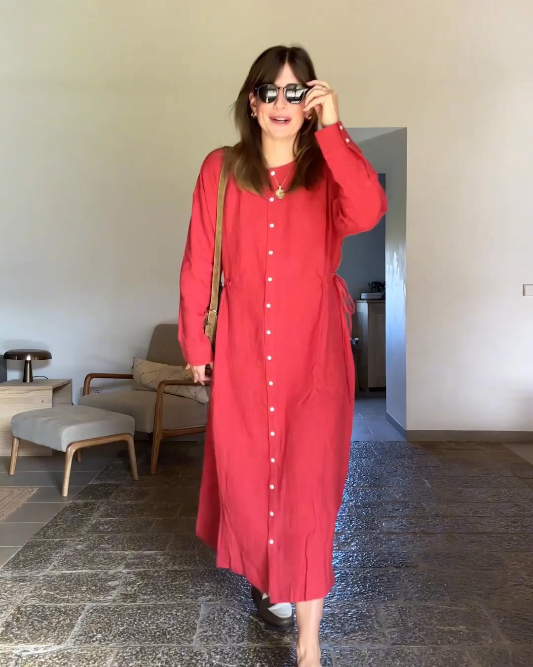 The graceful flow and movement of this skirt is second to none. It follows you so elegantly as you walk! The crinkled linen texture is gorgeous and I live for details like these.