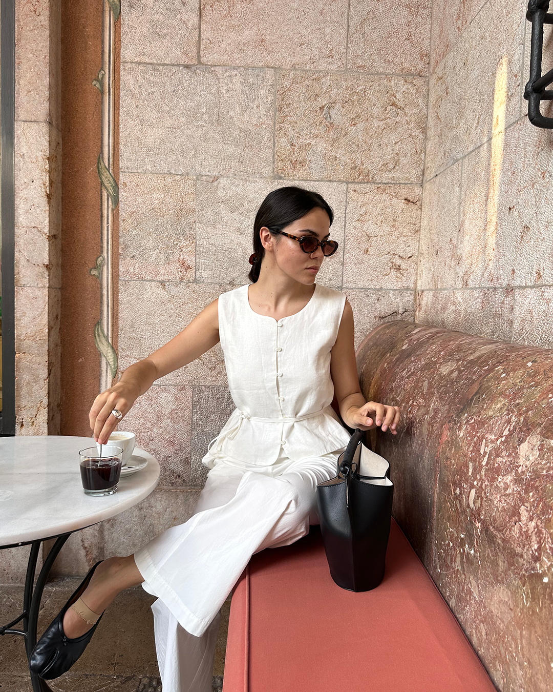 The graceful flow and movement of this skirt is second to none. It follows you so elegantly as you walk! The crinkled linen texture is gorgeous and I live for details like these.