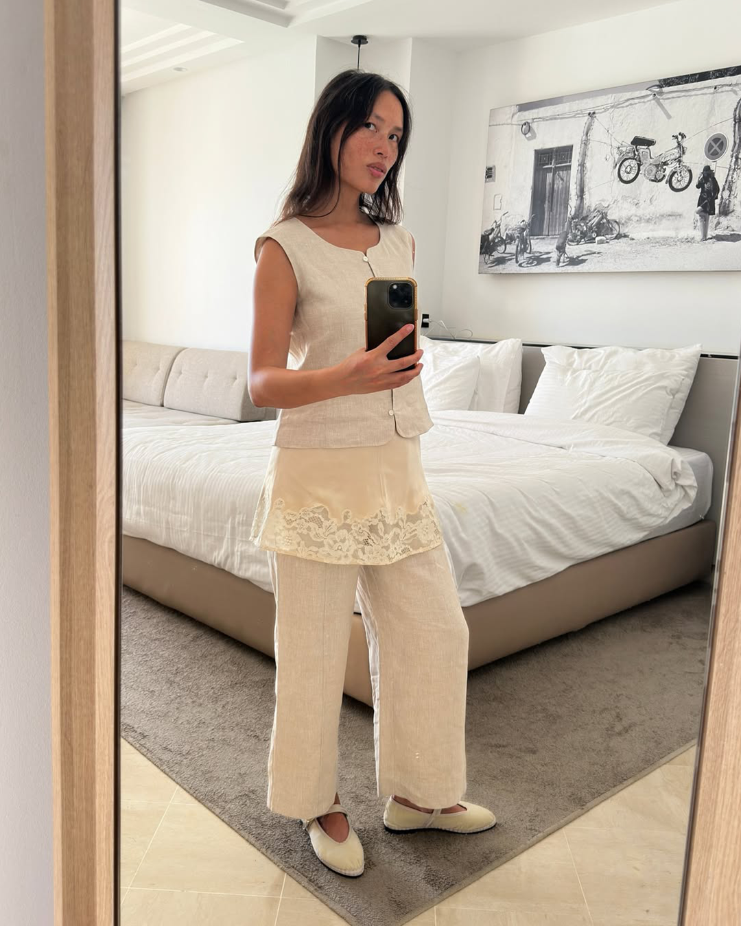 The graceful flow and movement of this skirt is second to none. It follows you so elegantly as you walk! The crinkled linen texture is gorgeous and I live for details like these.