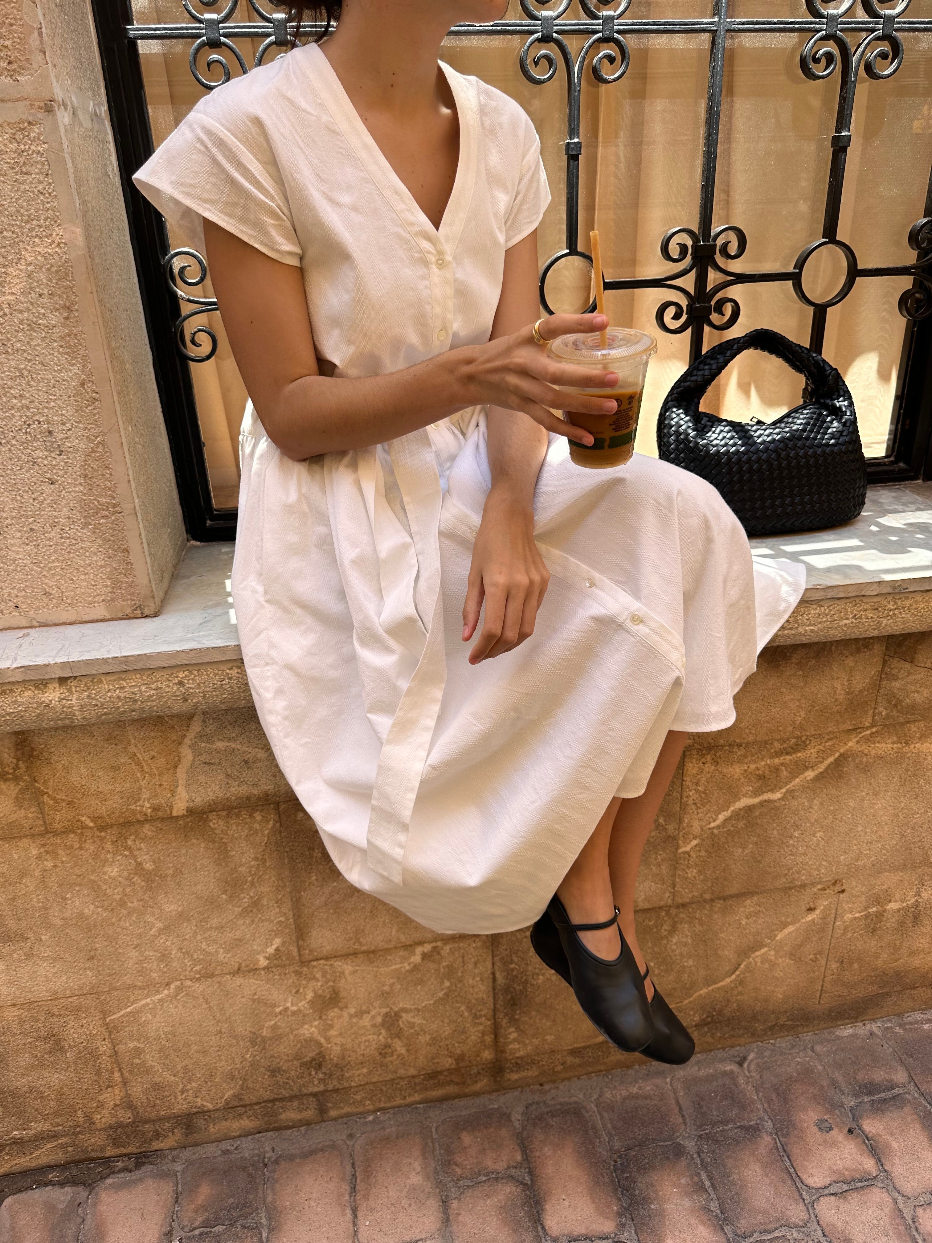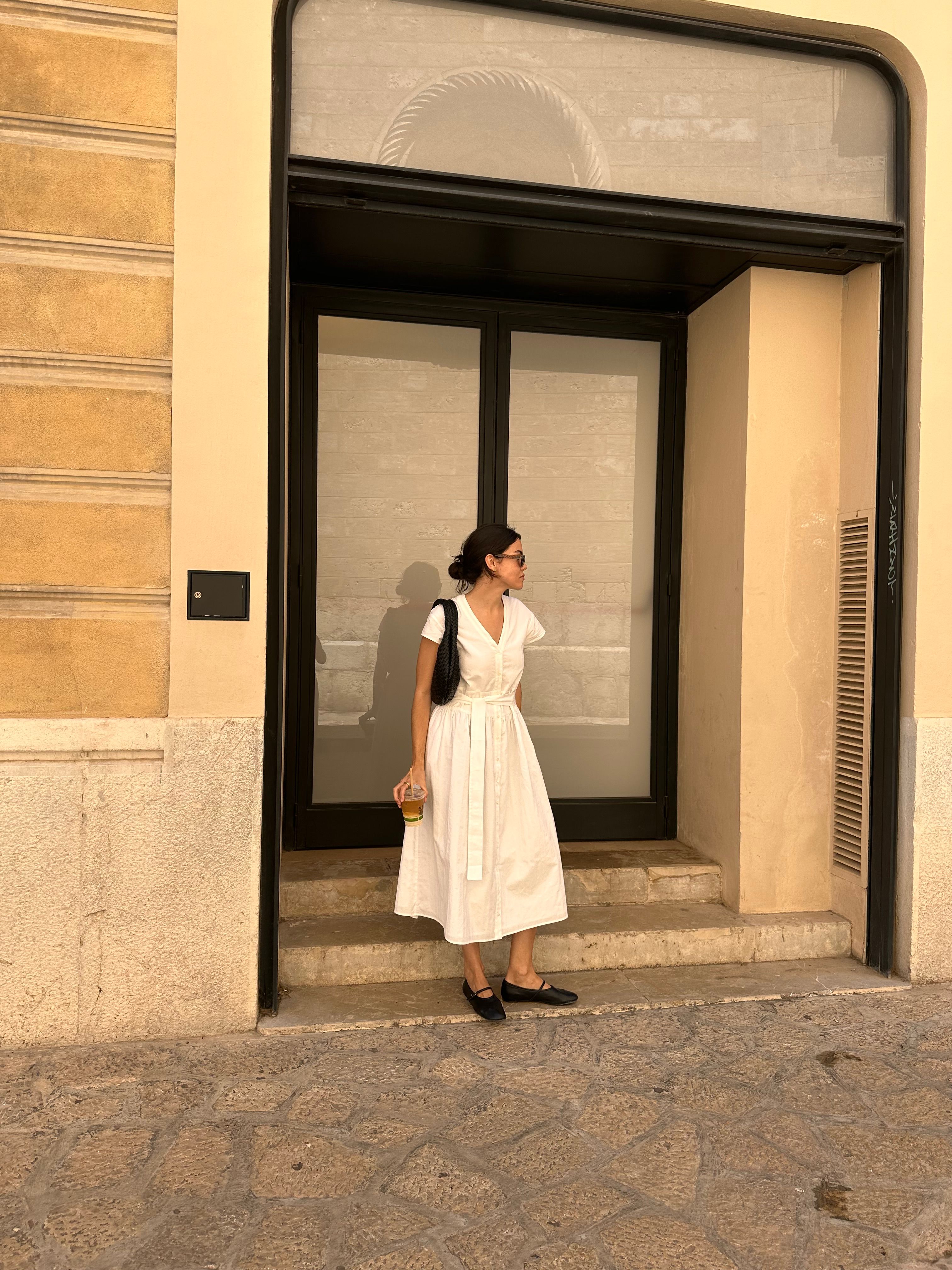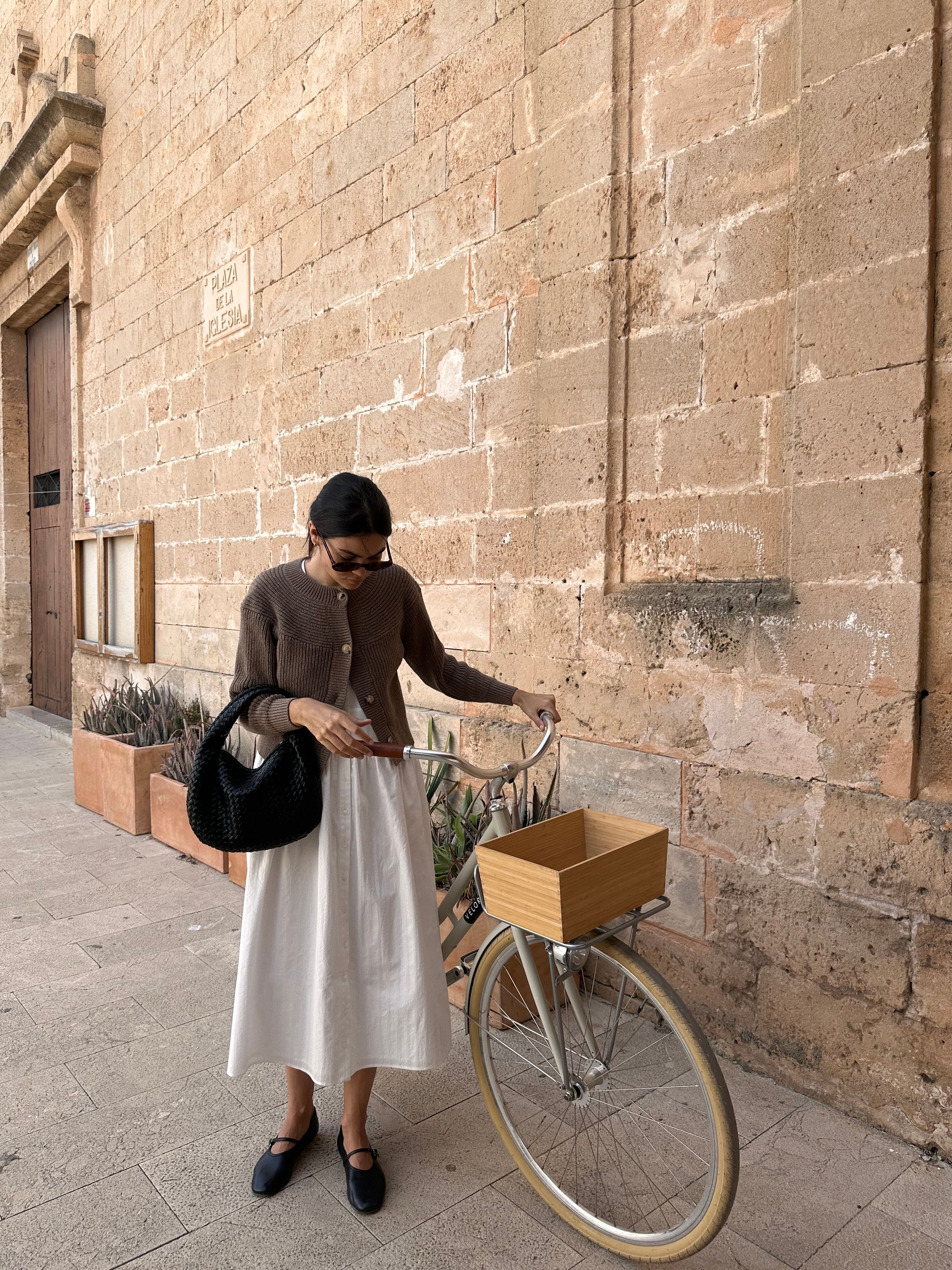 Carla is 171cm, and is wearing a size S for Cruise Dress and Cabin Cardigan.
