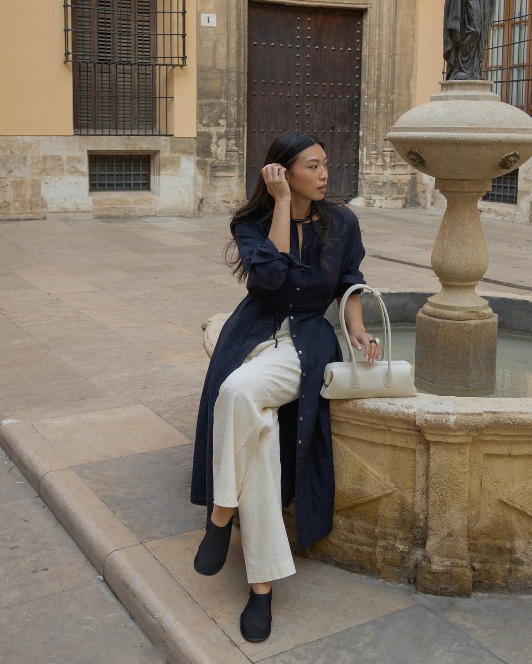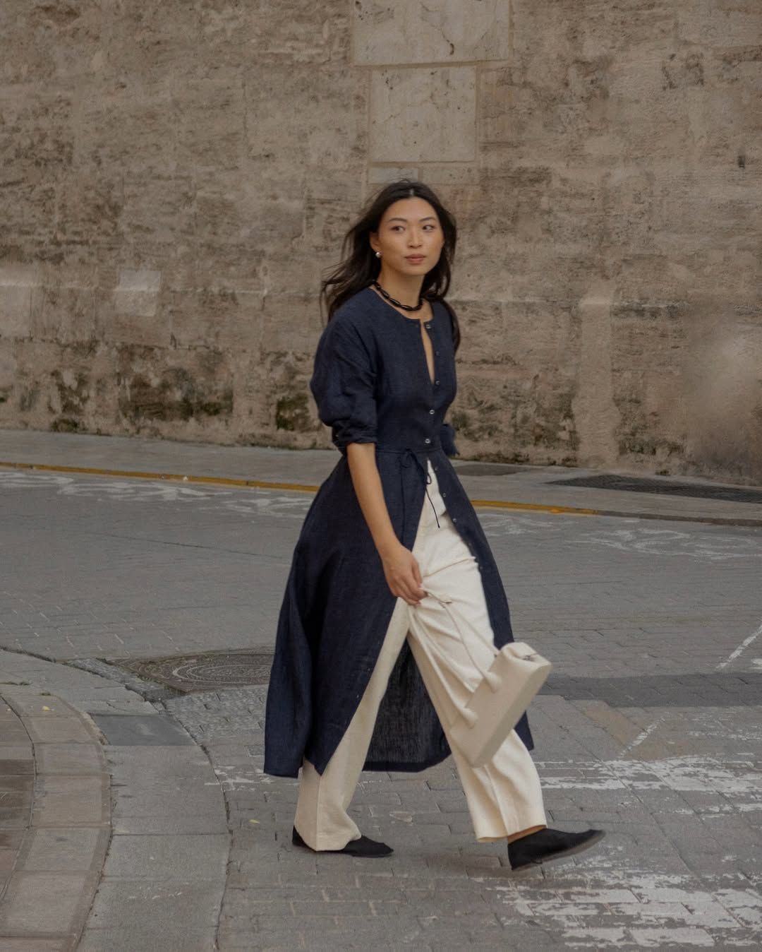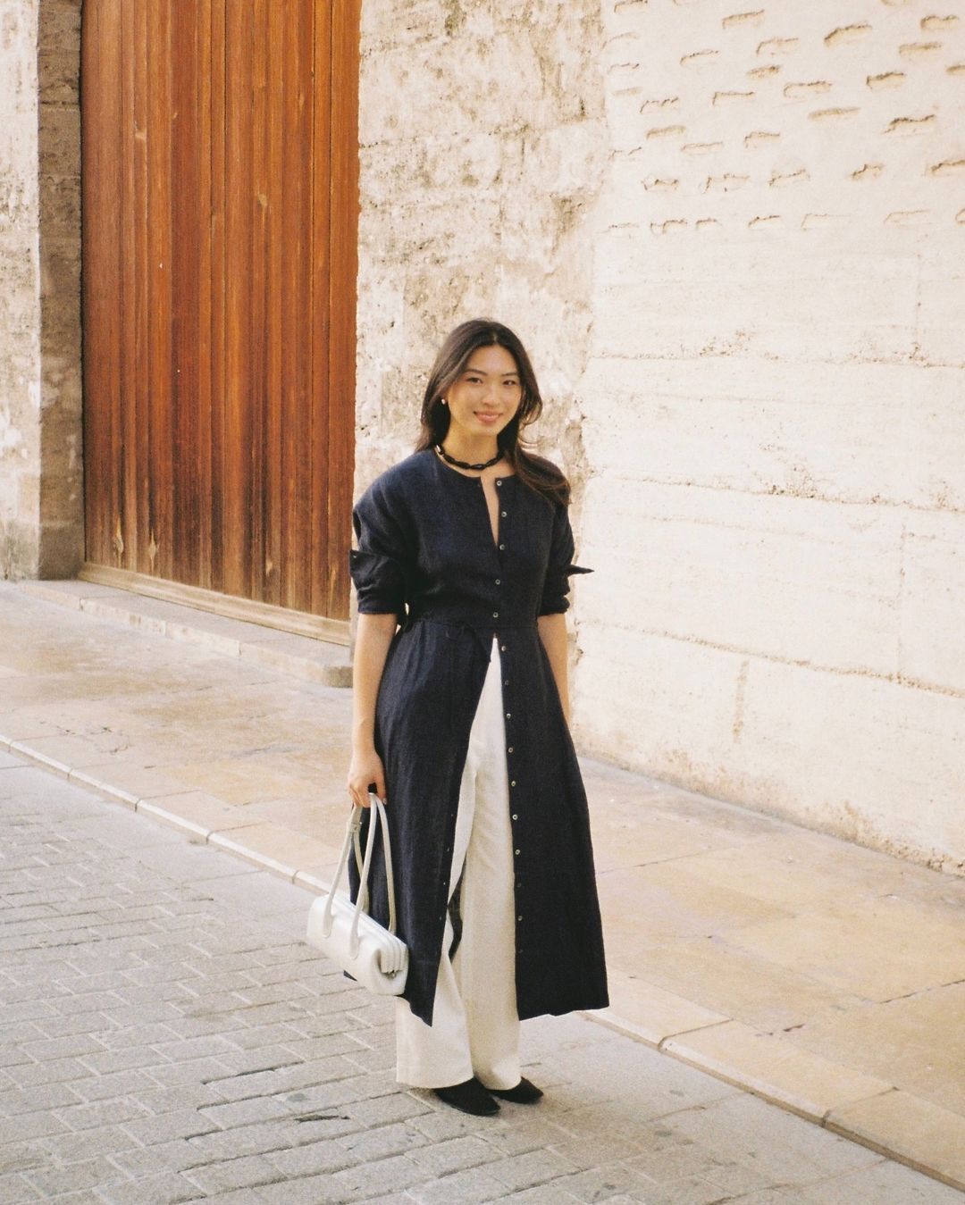 Michelle is 170cm, and wears a size M for Beth Dress & Painter Trousers.