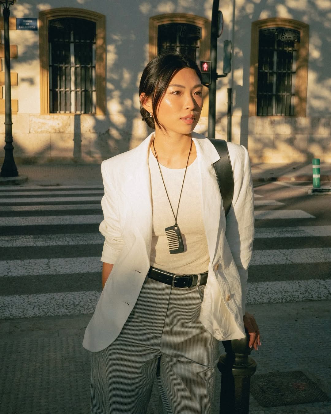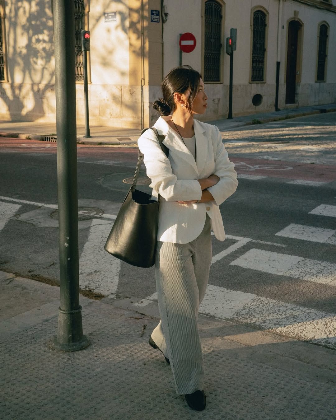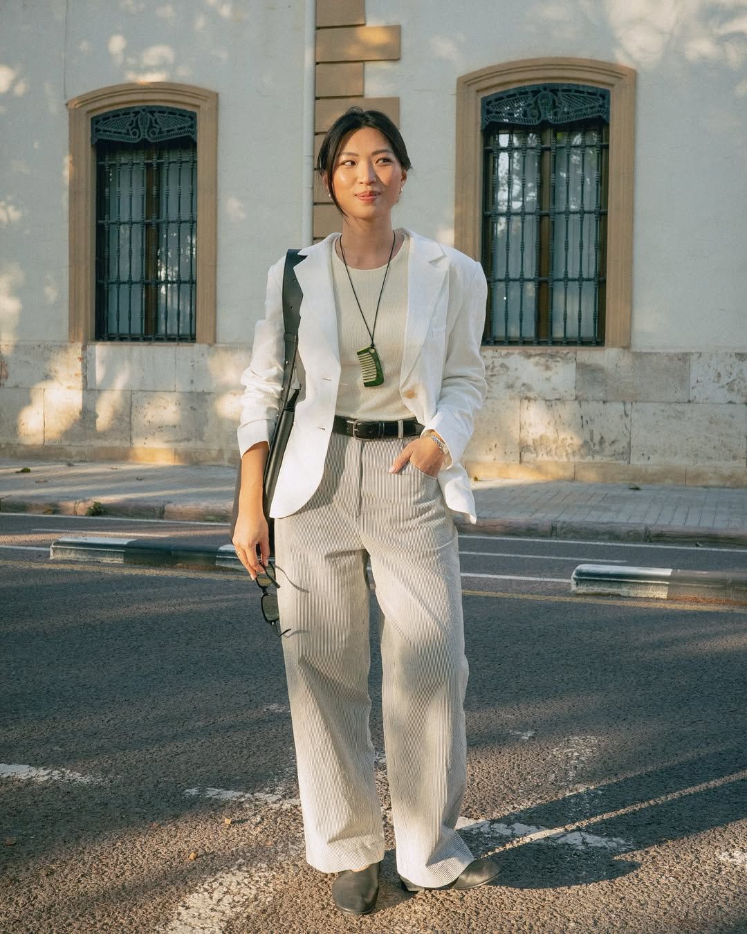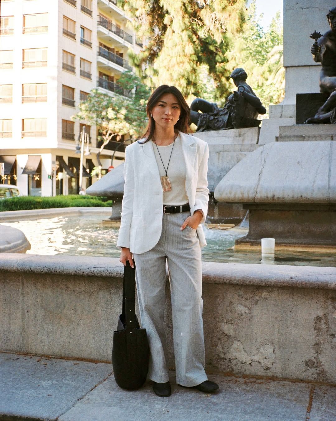 Michelle is 170cm, and wears size M for City Blazer and Painter Trousers, and size S for Deli Tank.